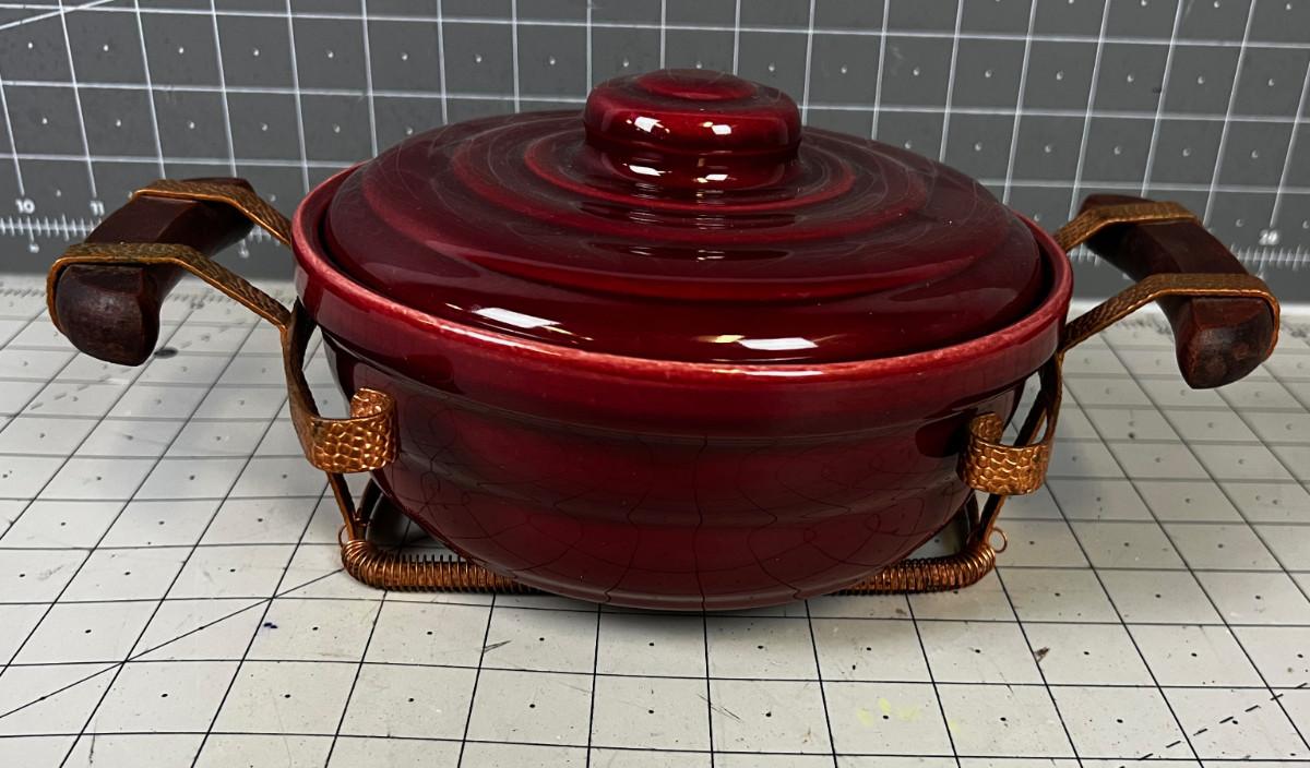 Bauer Casserole Dish with Copper Holder Circa 1960's