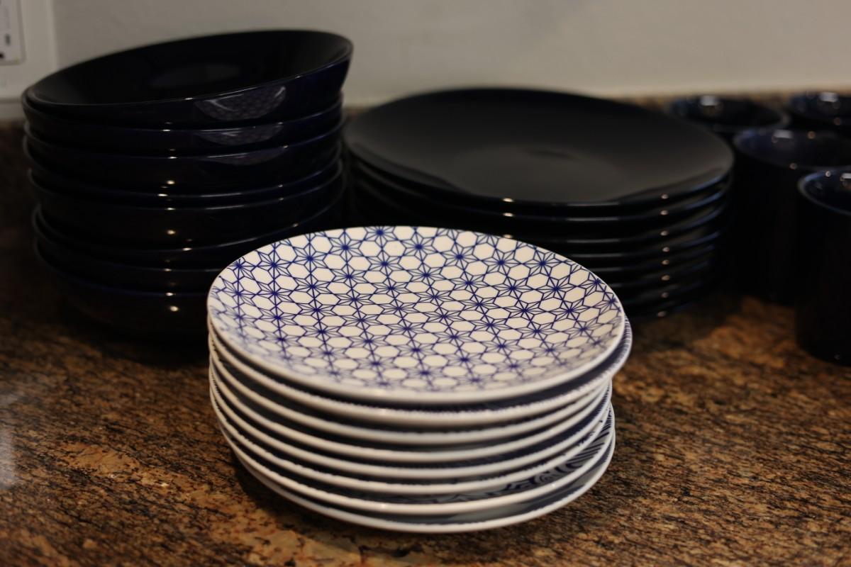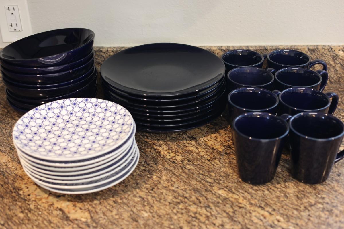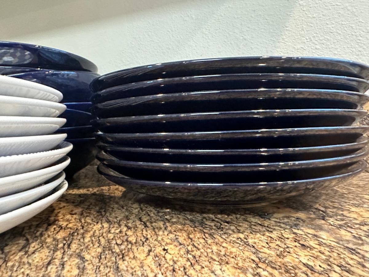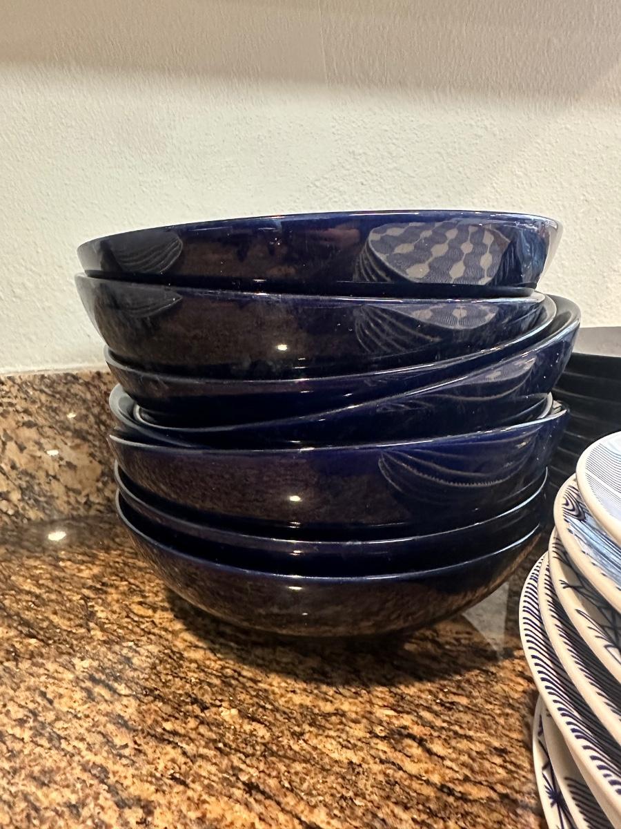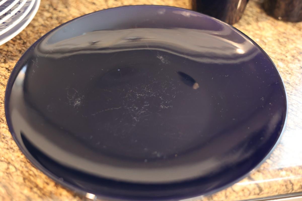 There is some light scratches on some of the blue plates and bowls shown in the pictures.