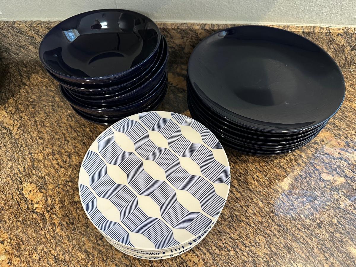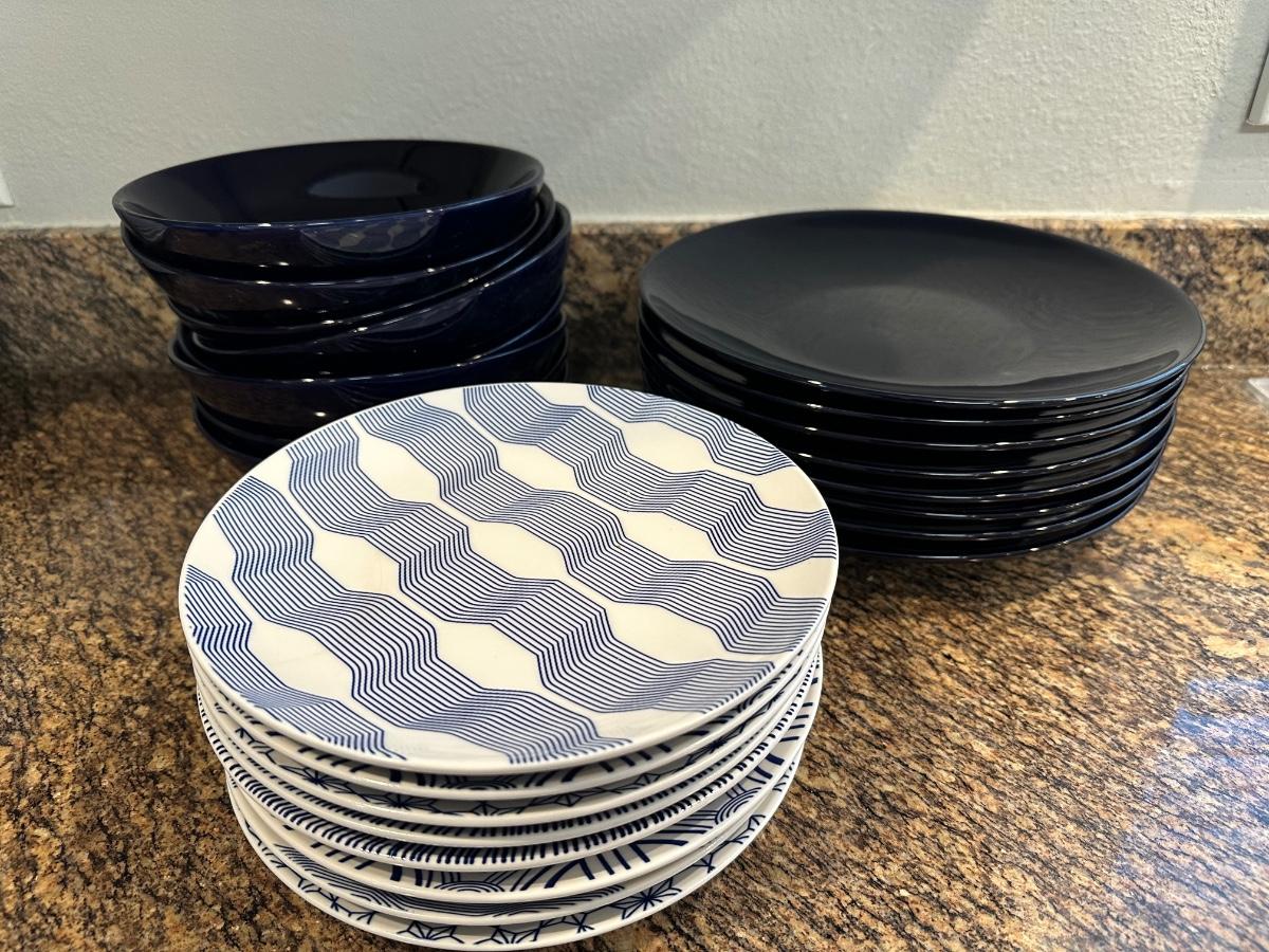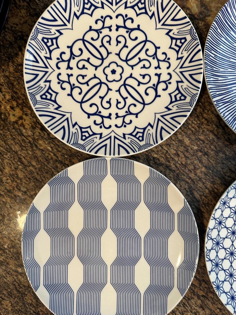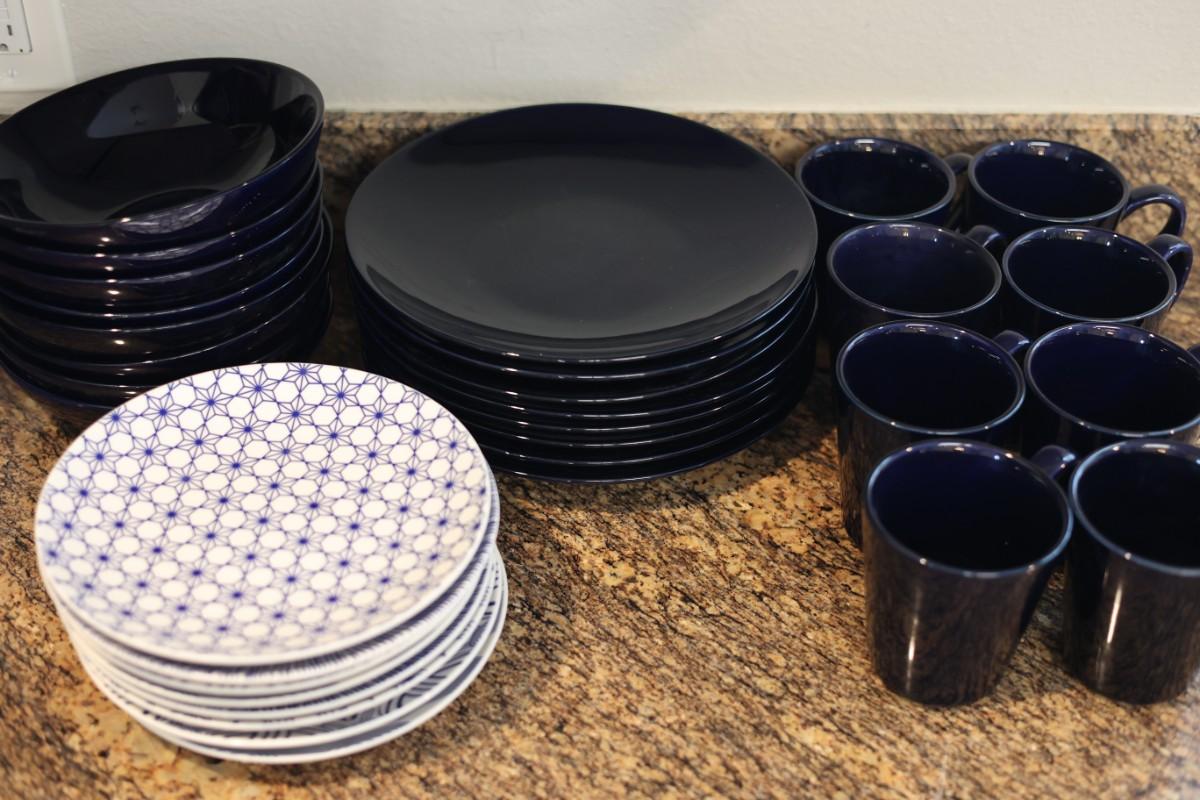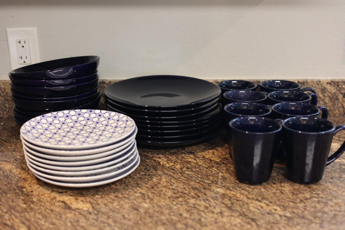 There is some light scratches on some of the blue plates and bowls shown in the pictures.