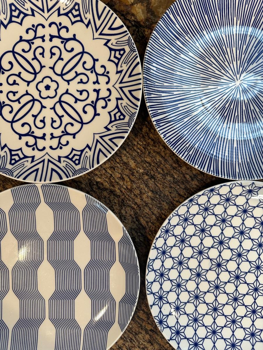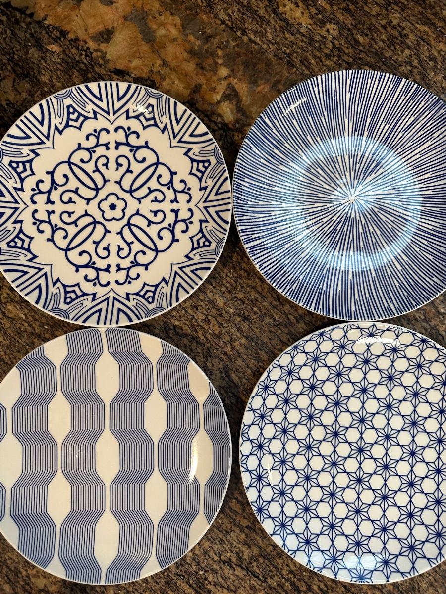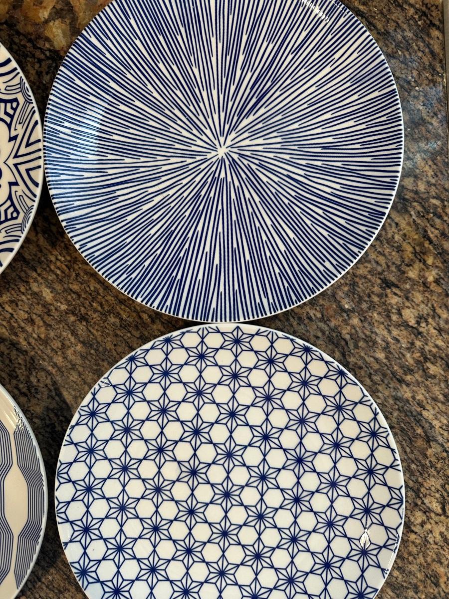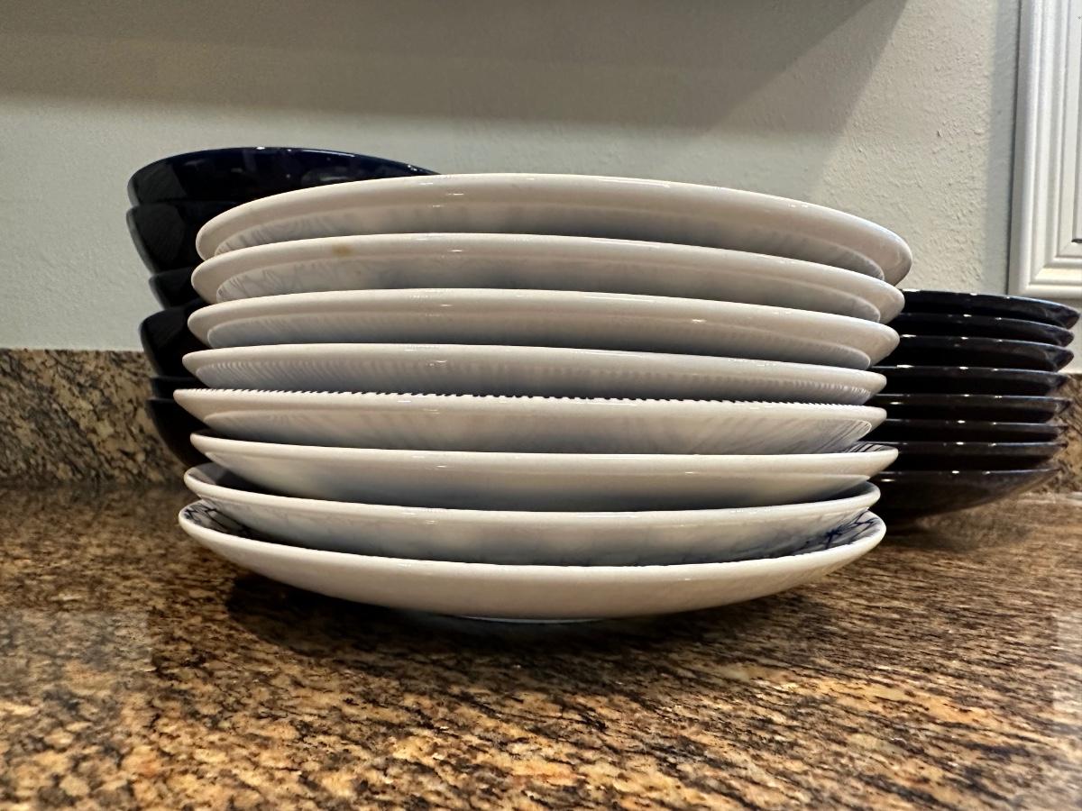 There is some light scratches on some of the blue plates and bowls shown in the pictures.