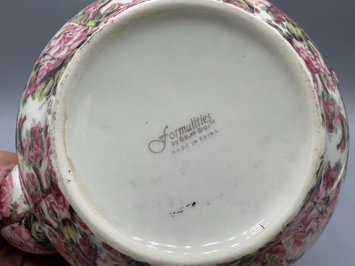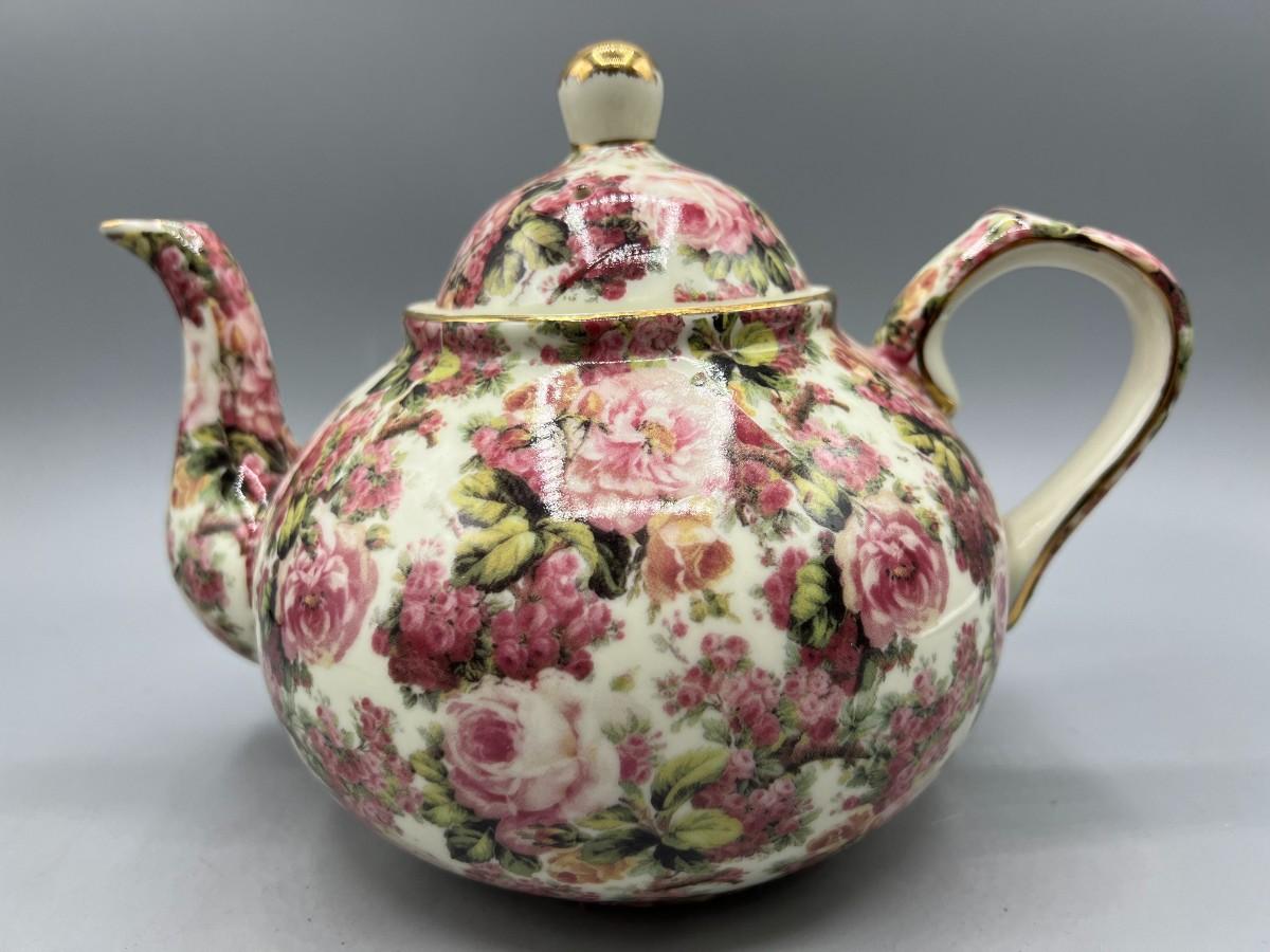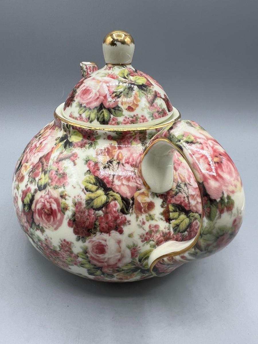 Baum Bros Formalities Ceramic Pink Rose Flower Pattern Teapot
