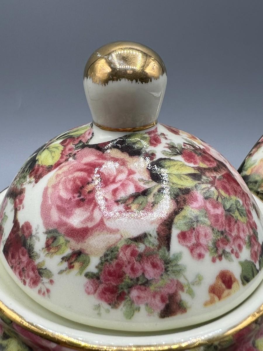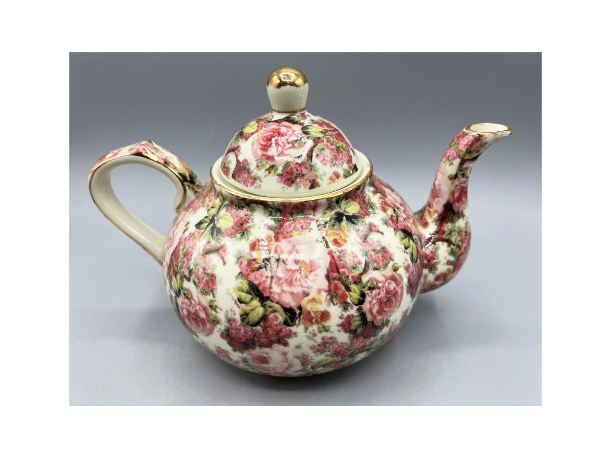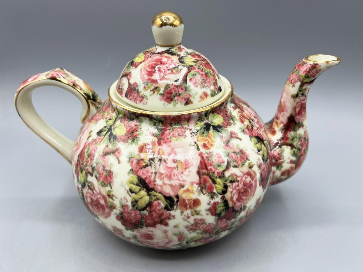Baum Bros Formalities Ceramic Pink Rose Flower Pattern Teapot