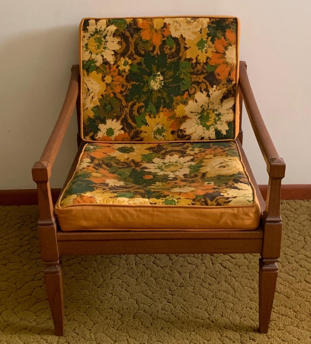 Baumritter walnut lounge chair with floral and solid cushion options: both floral, both solid, or one of each!