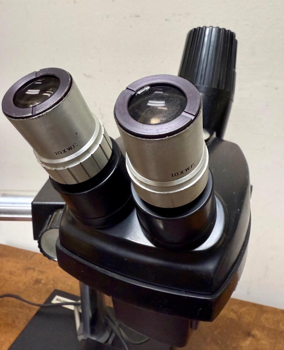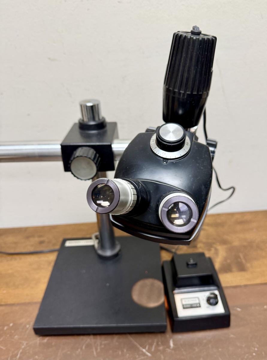 Binocular microscope with built-in light, light control can set light to 3 different brightness levels. Tested, works as expected.
