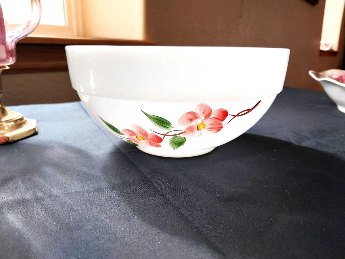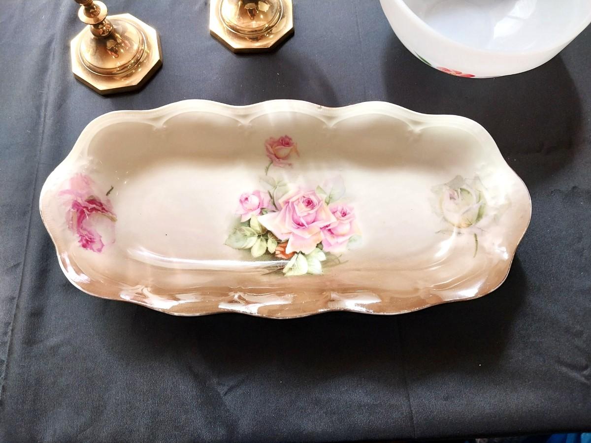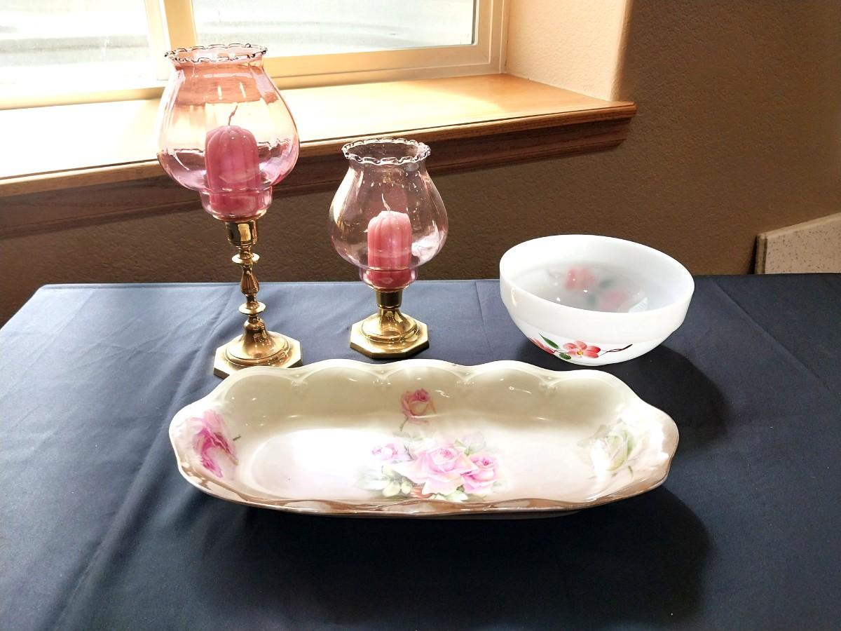 BAVARIA PLATTER-MILK GLASS BOWL AND CANDLE HOLDERS