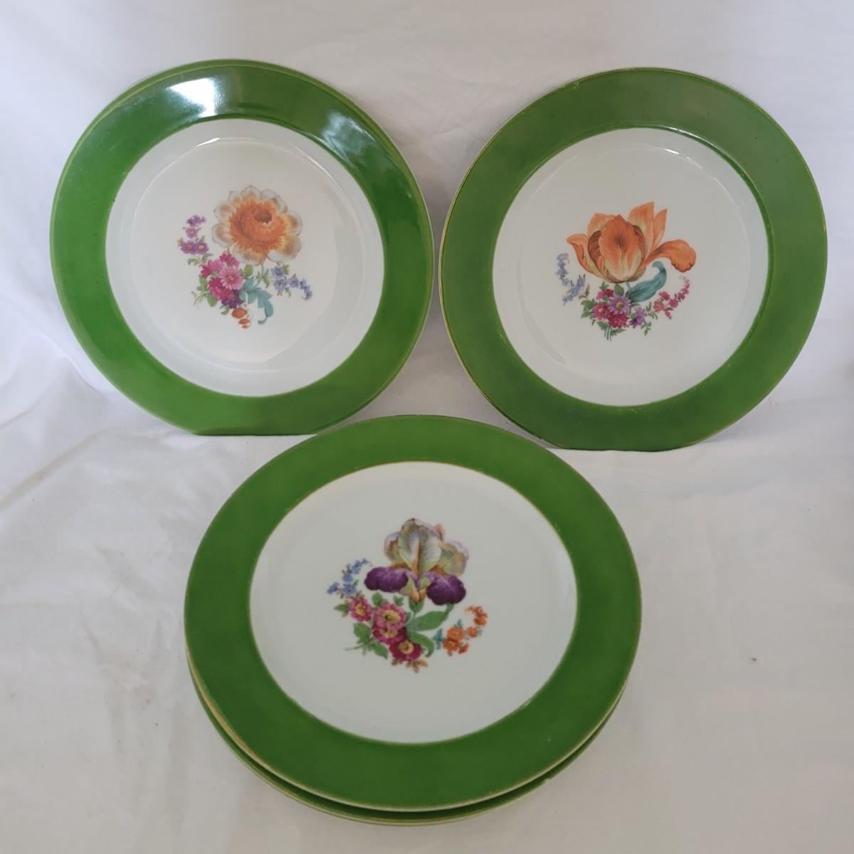 This set of five gold edged plates by Bavaria Tirschenreuth feature three different lovely floral prints. Measure approximately 11”D. Shipping available.