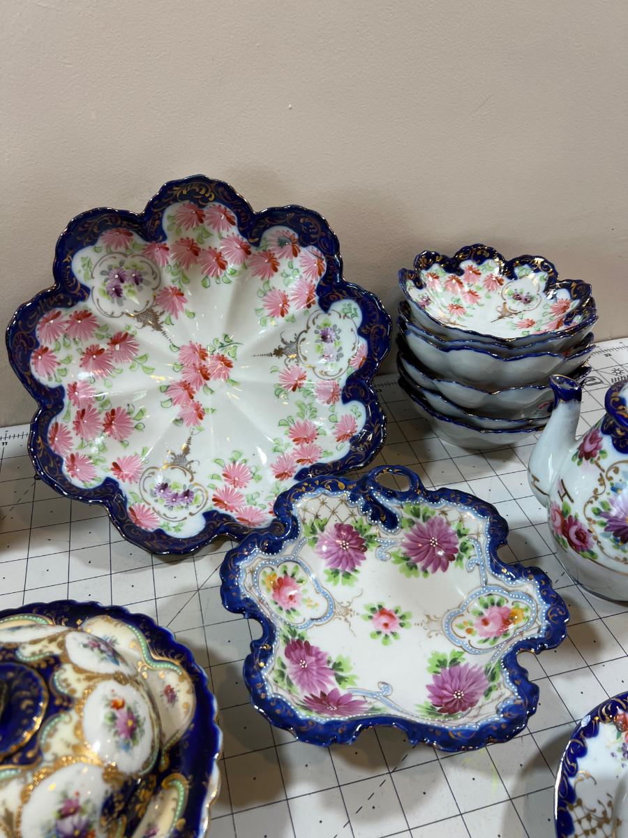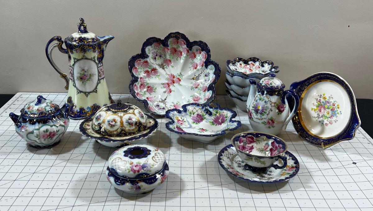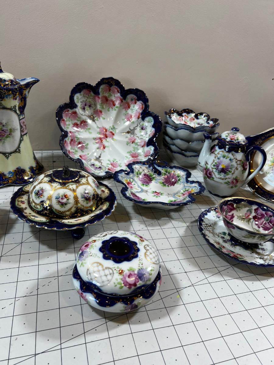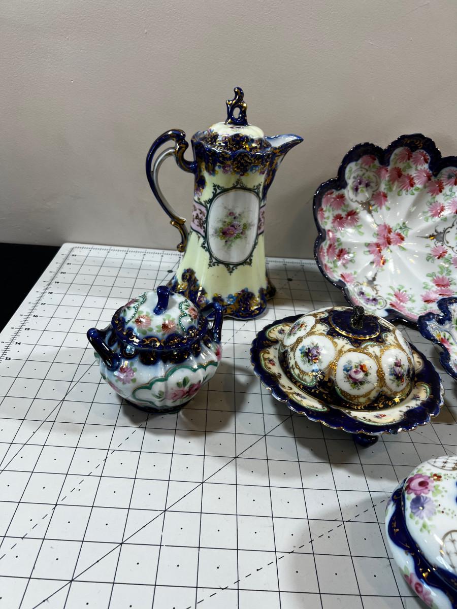 Gorgeous! No makers mark. Circa Turn of the Century Hand Painted China With Tea and Coffee pots plus berry bowls. Mixed lot.
