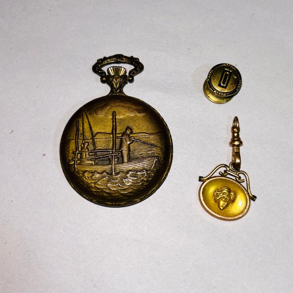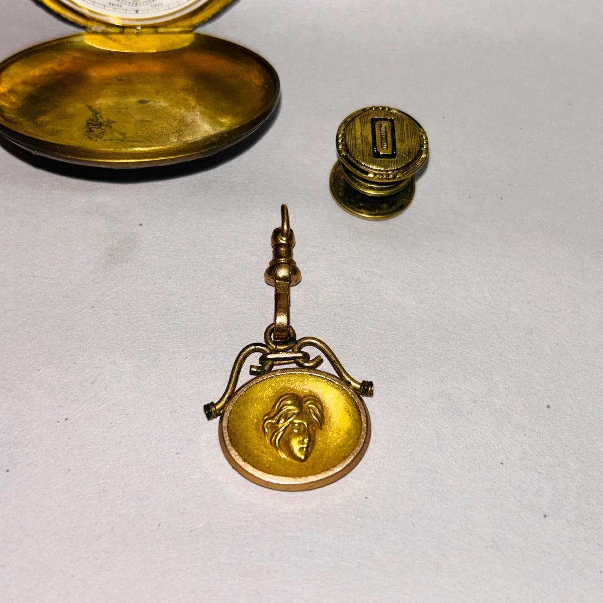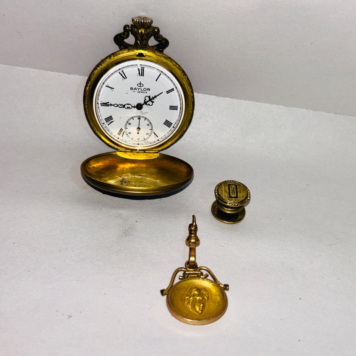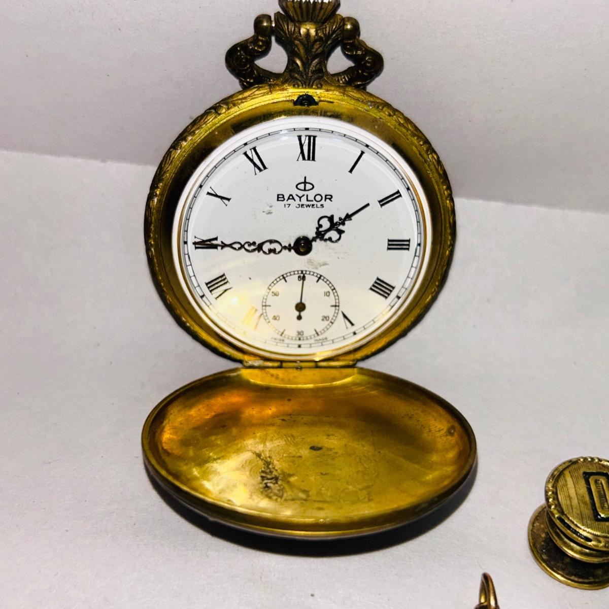 BAYLOR 17 JEWEL POCKET WATCH WITH CHARM AND CUFFLINKS