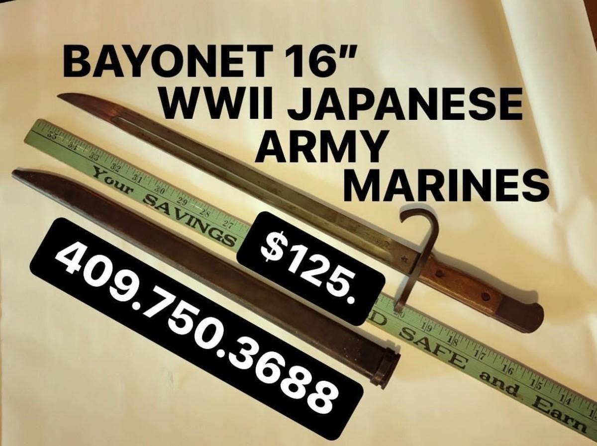 BAYONET 16" w/ scabbard Japanese Army / Marines WWII Fighting fits Arisaka FREE Shipping in USA
