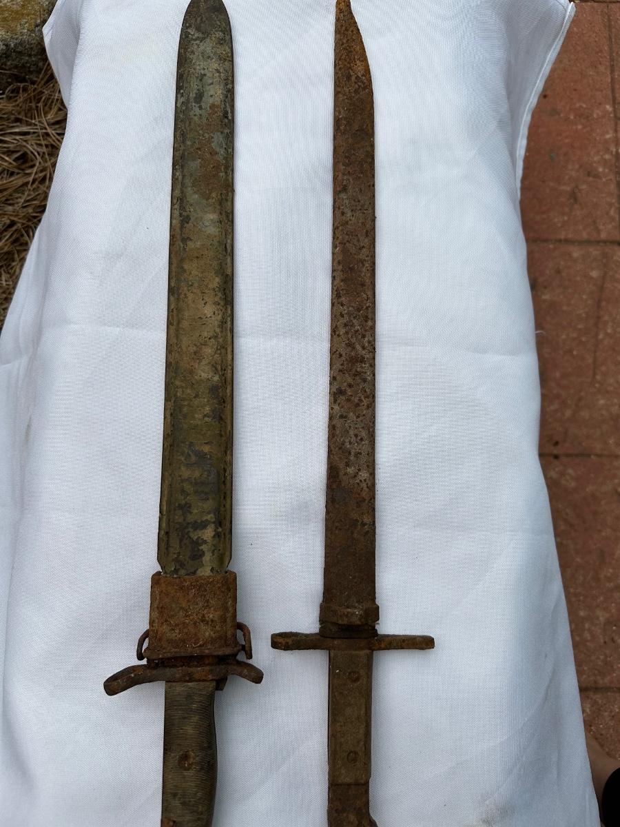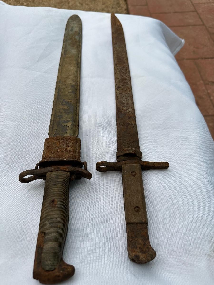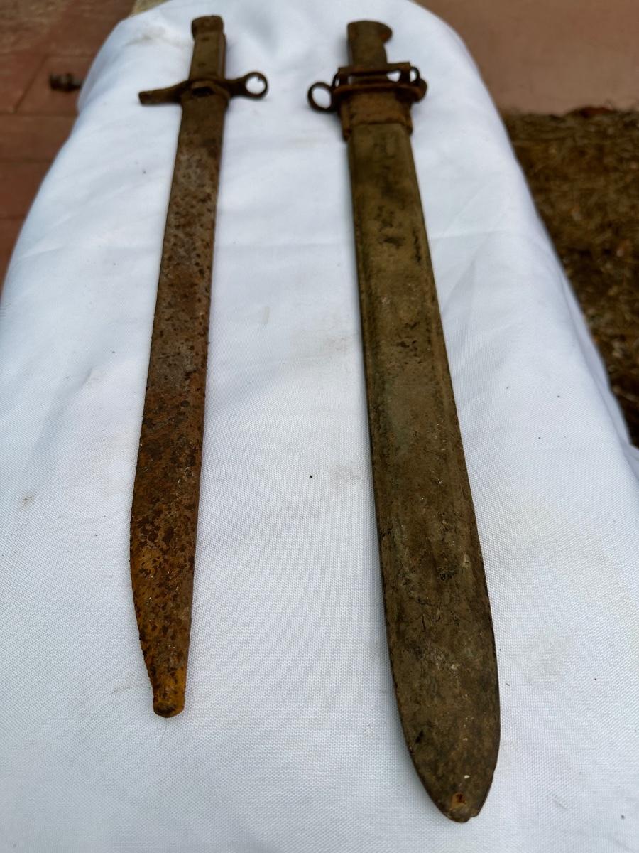 One is locked in the scabbard from rust. Could most likely brake free soaking in oil or vinegar.