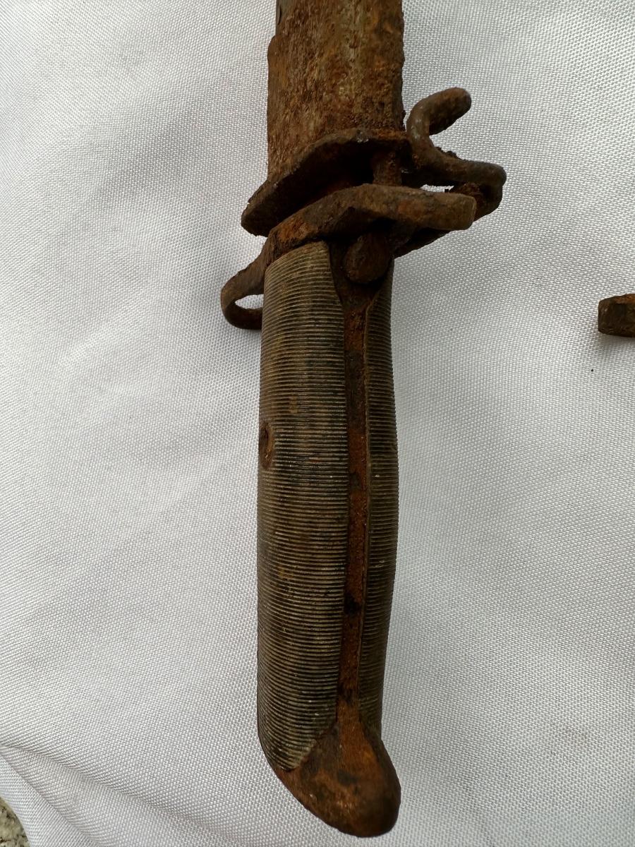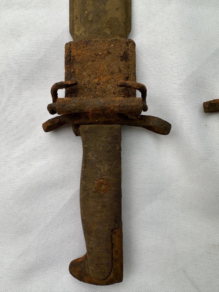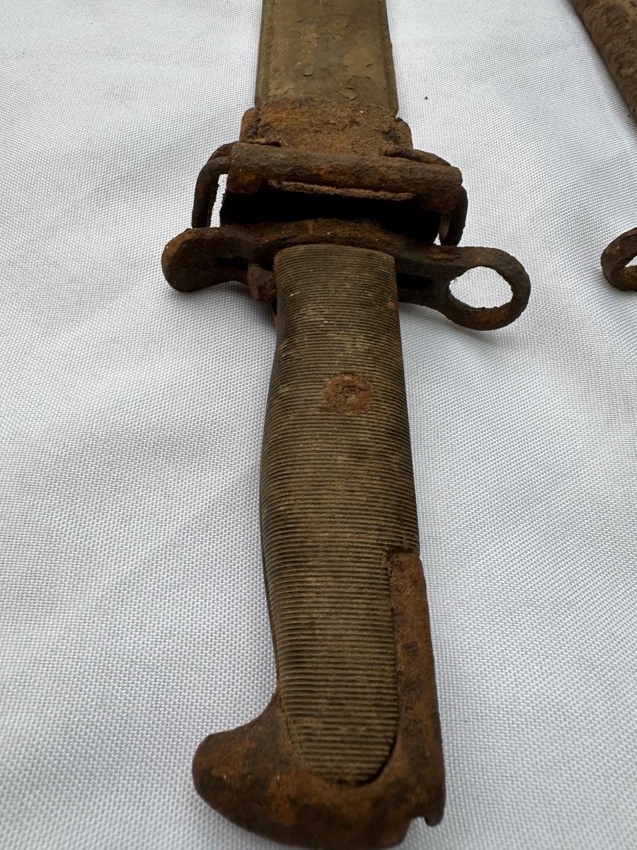 One is locked in the scabbard from rust. Could most likely brake free soaking in oil or vinegar.