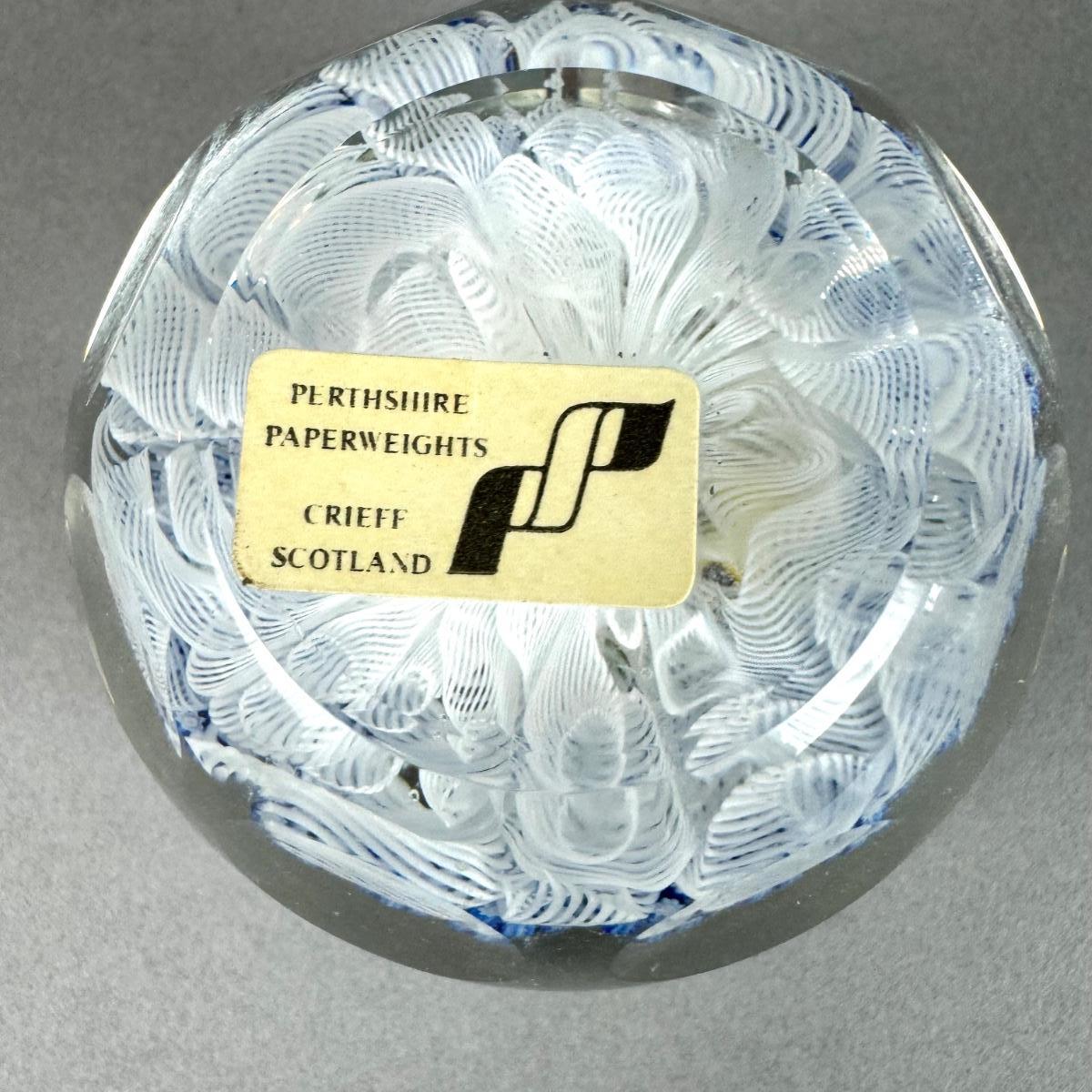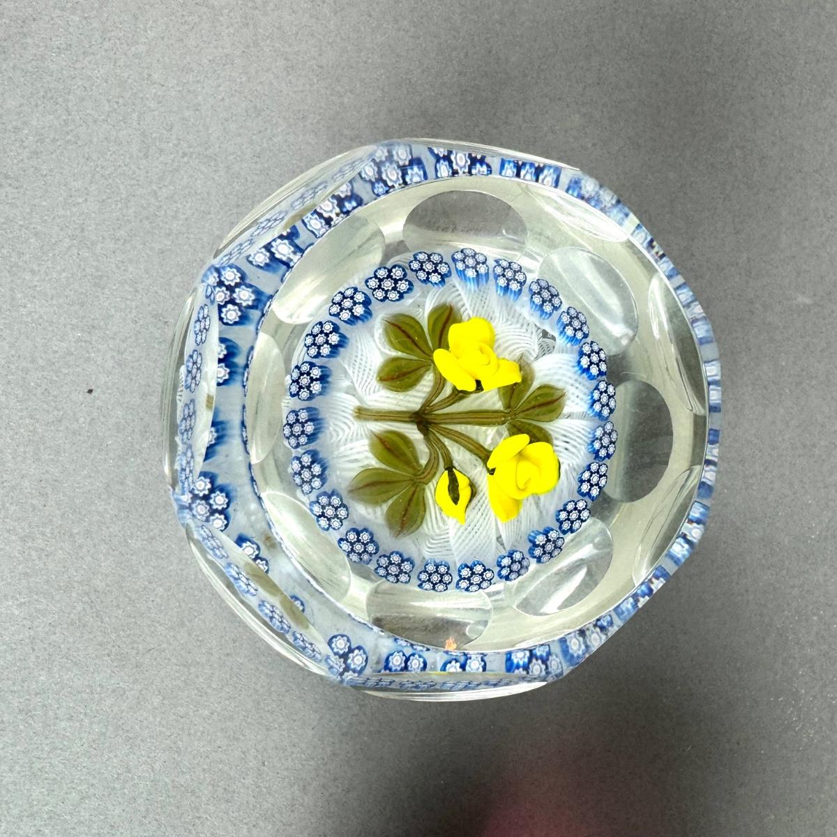 the floral glass paperweight is by Perthsire from Crieff Scotland measuring 3" diameter