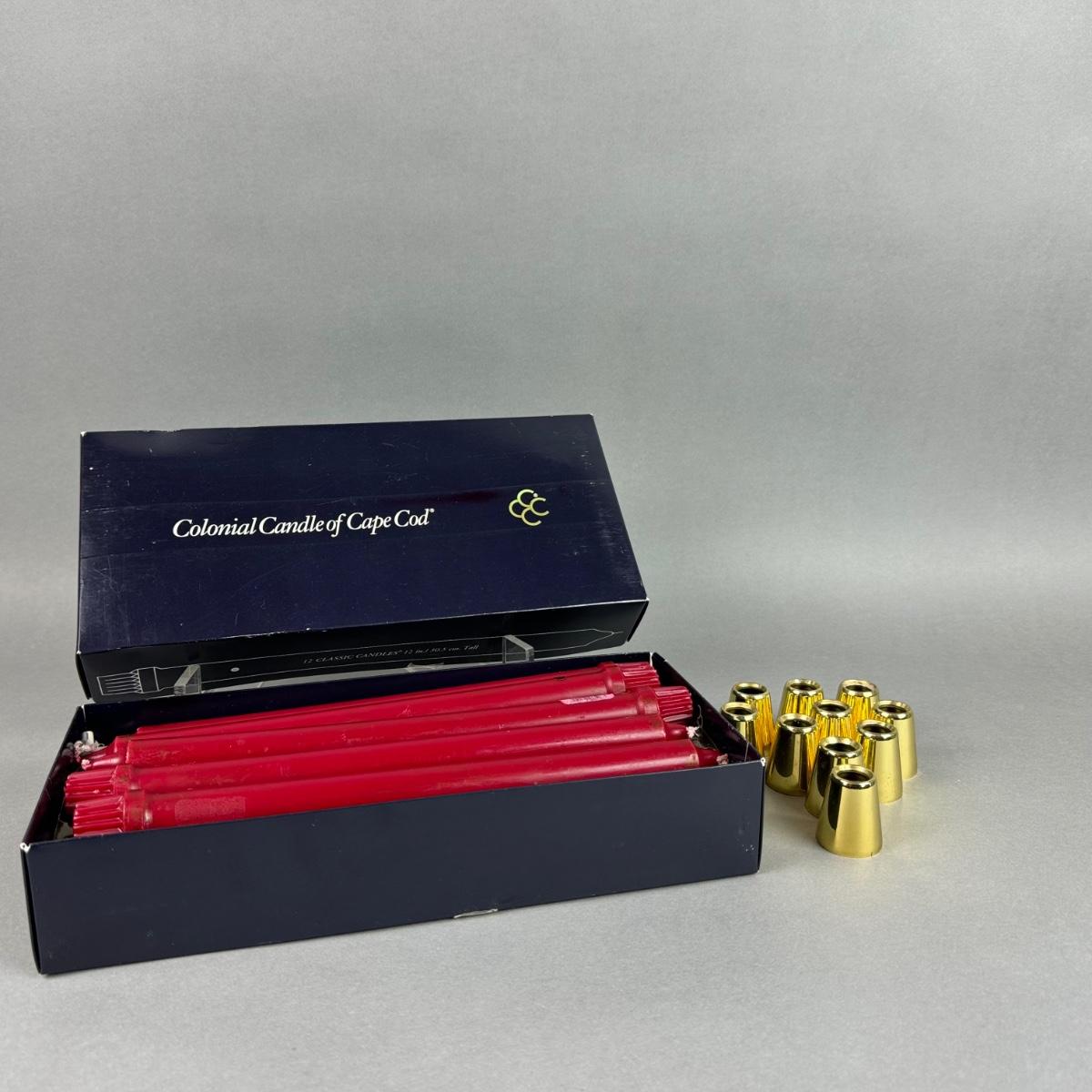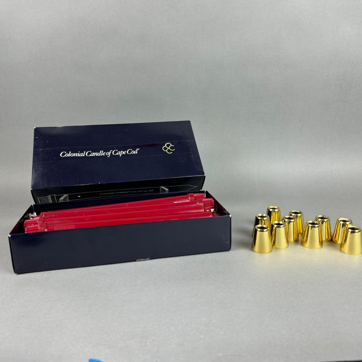 BB165 Lot of Cape Cod Cranberry Candles with 10- Brass Candle Toppers