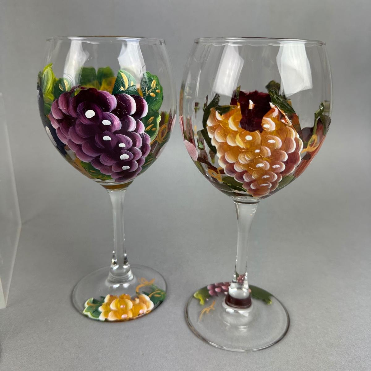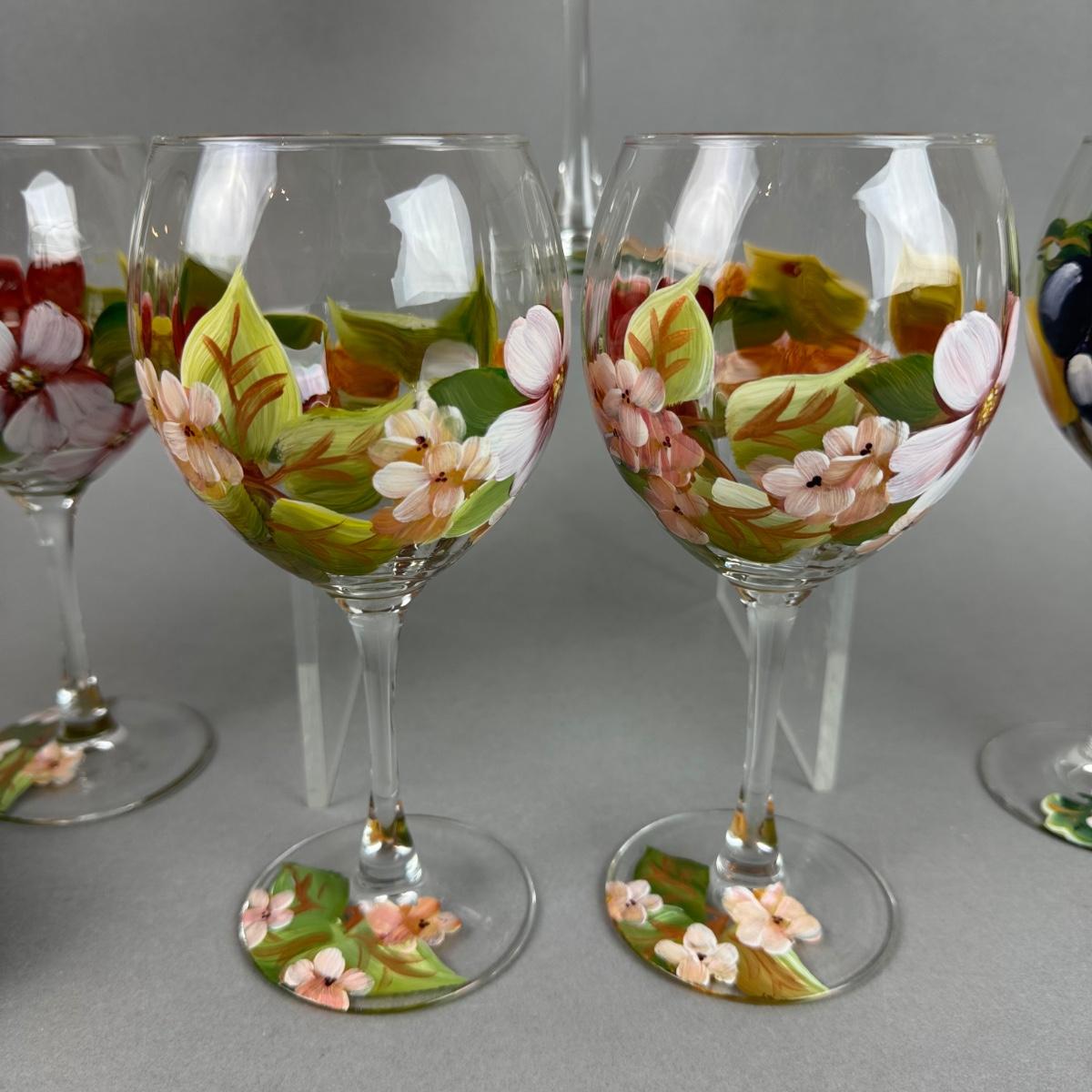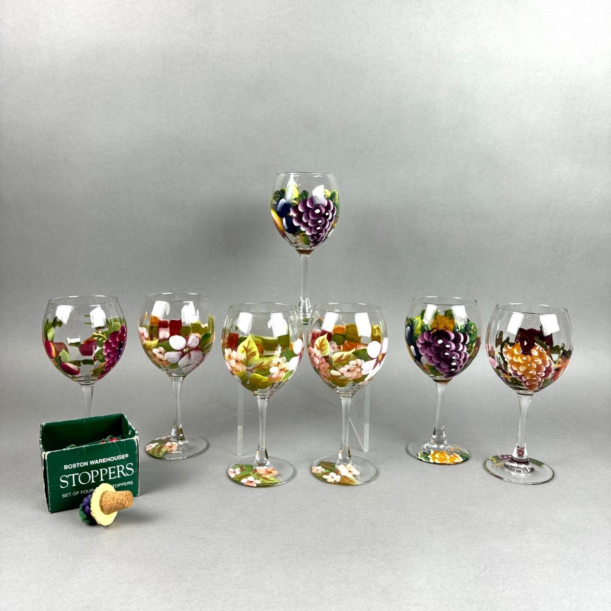 BB169 Handpainted Wine Glass Set of 7 with Bottle Stoppers