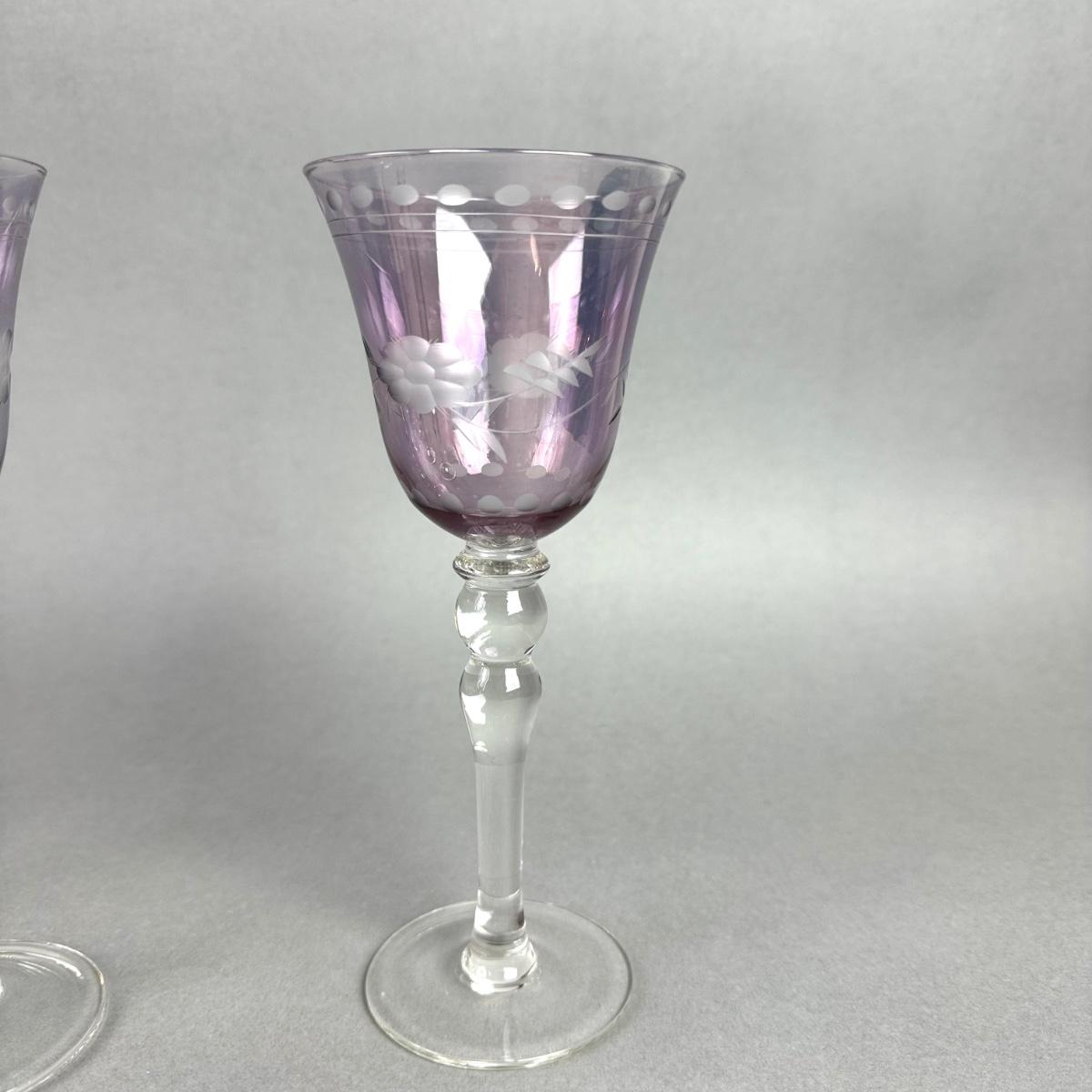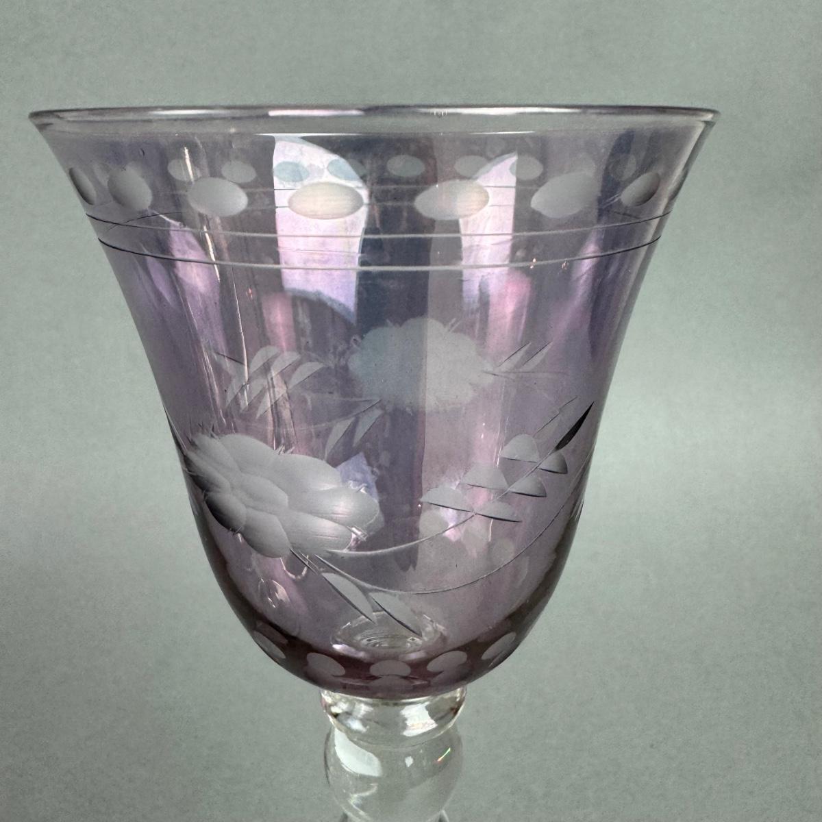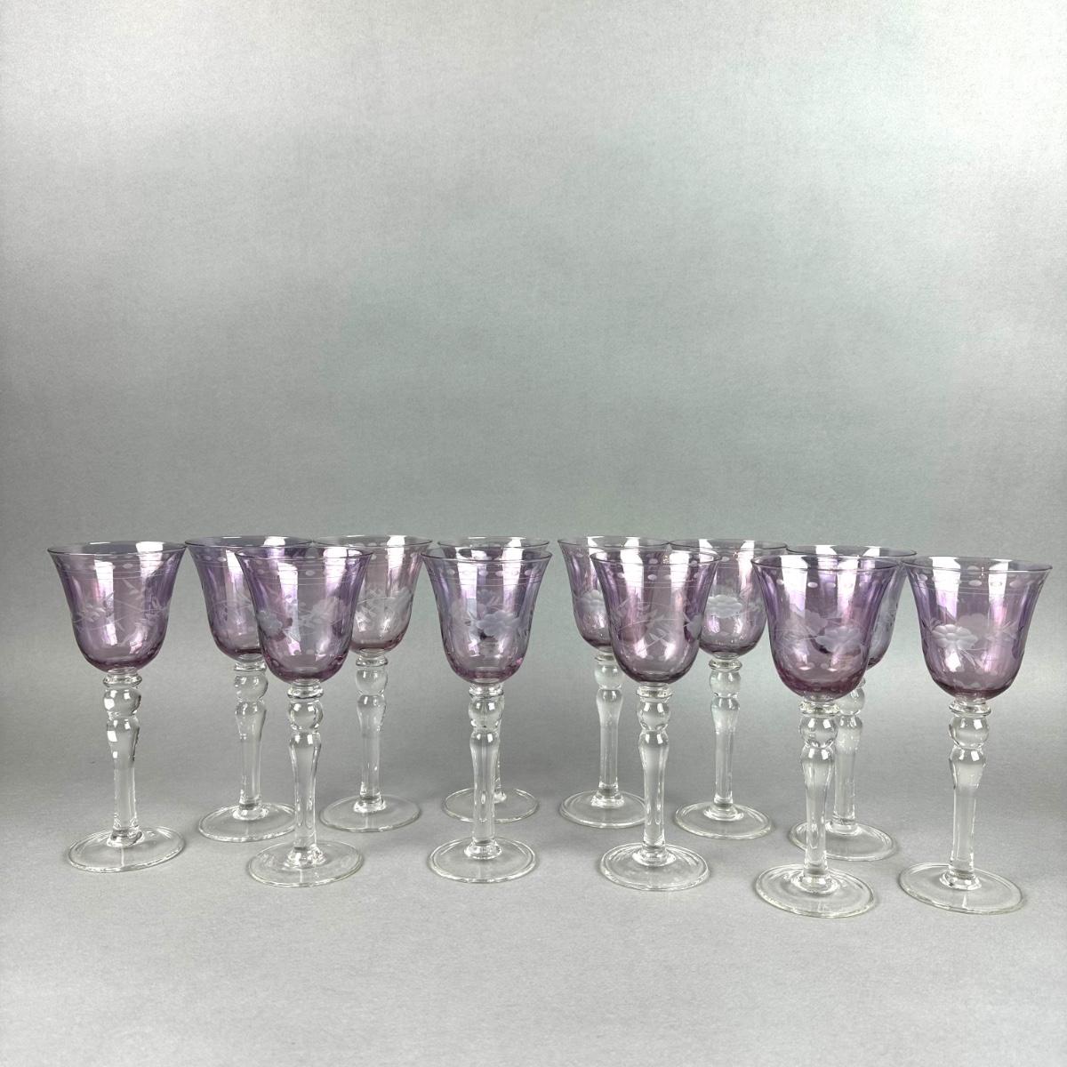 BB212 Set of 12 Vintage Purple and Clear Glass Etched Goblets