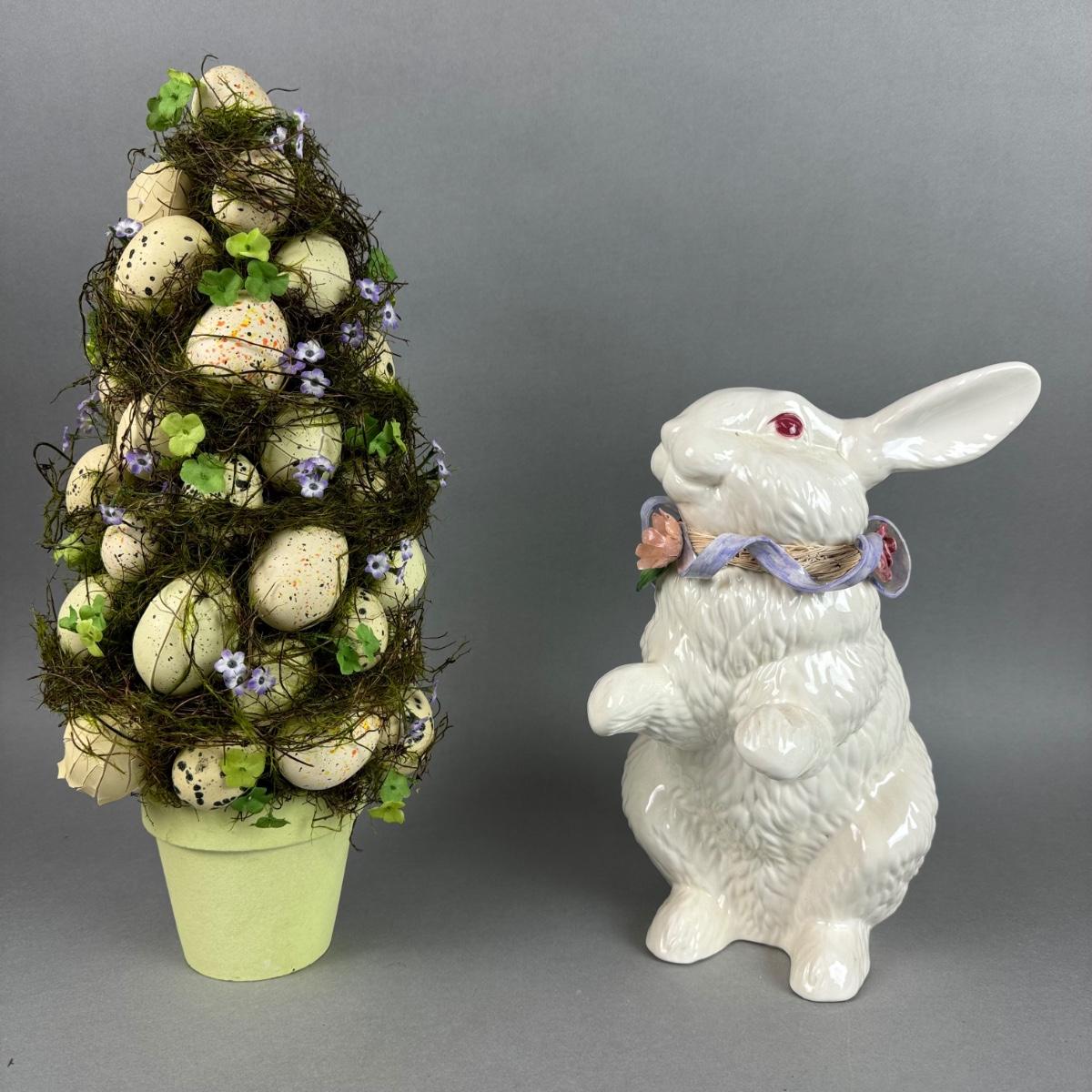 BB219 Ceramic Italian Bunny with Faux Decorative Egg Tree