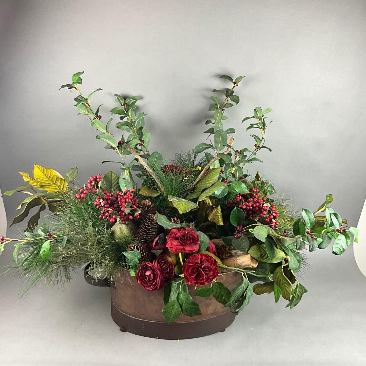 BB230 Large NDI Silk Winter Floral Arrangement with Copper Base Planter