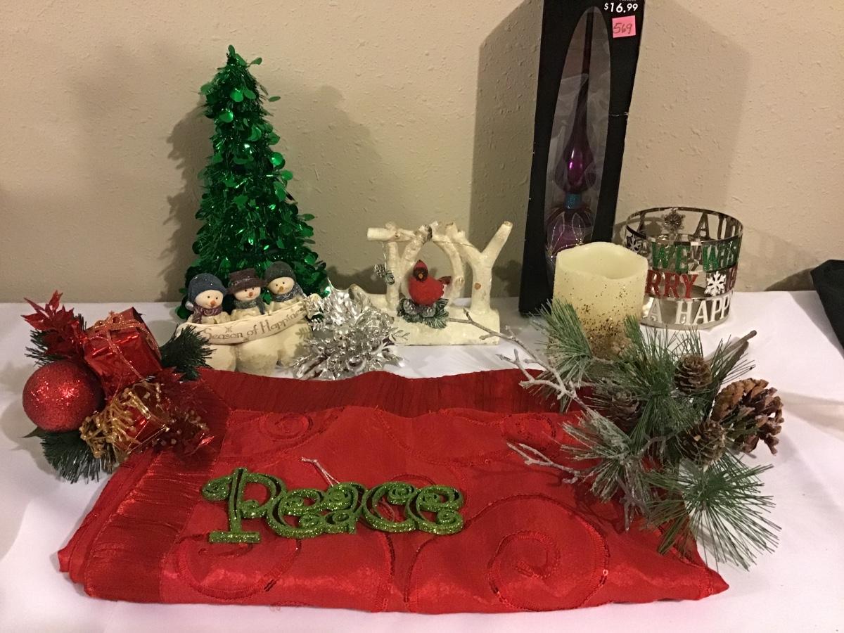 BB30 - Christmas Lot w/Red Table Runner, Tree Topper, etc.