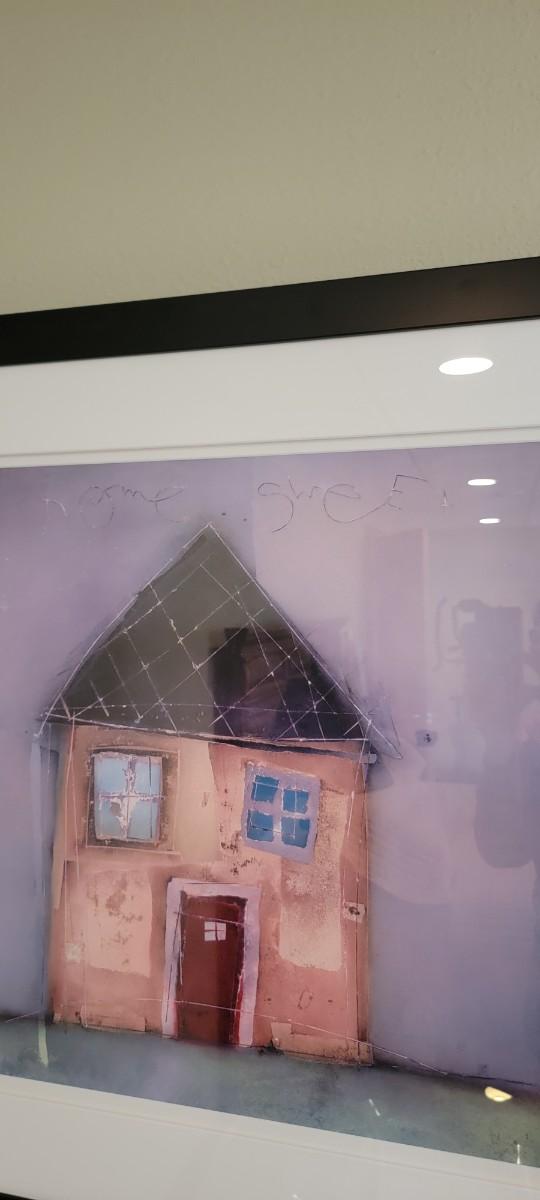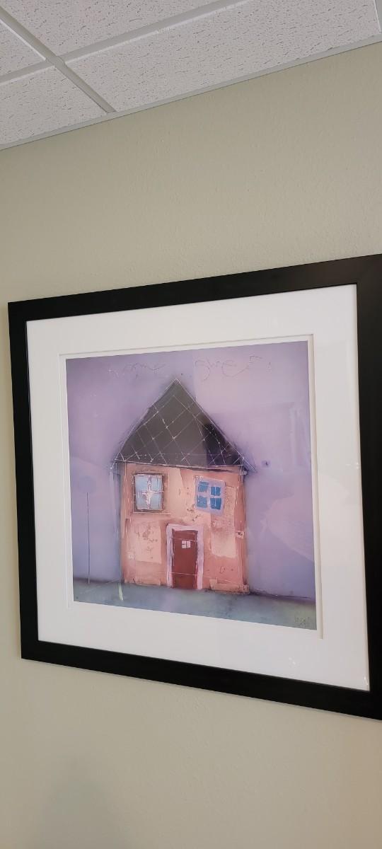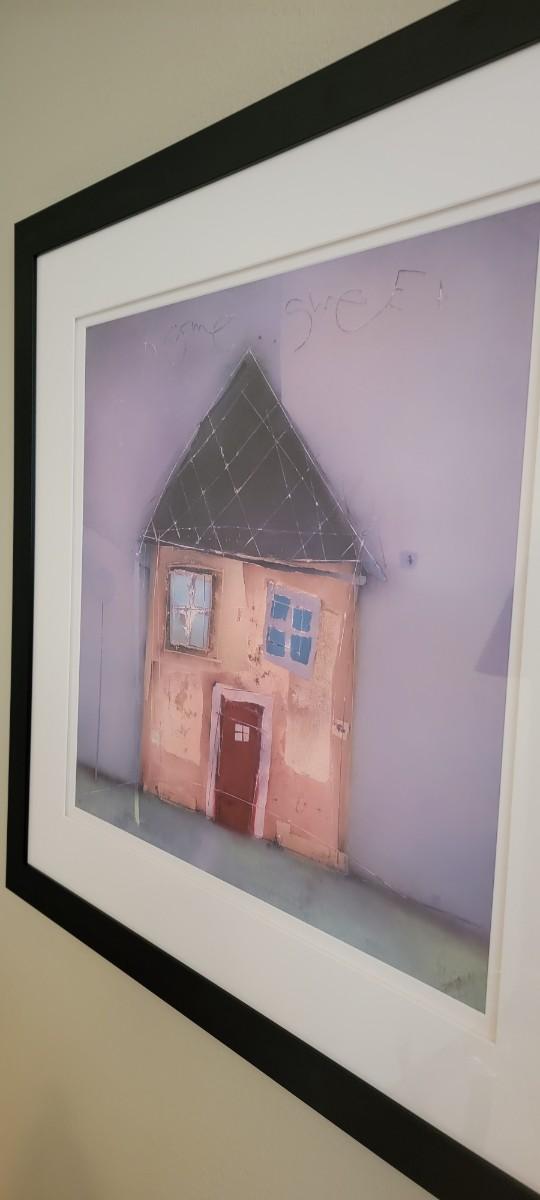 BB-43 'HomeSweet' original wall art in 36" x 36" black lacquer frame.