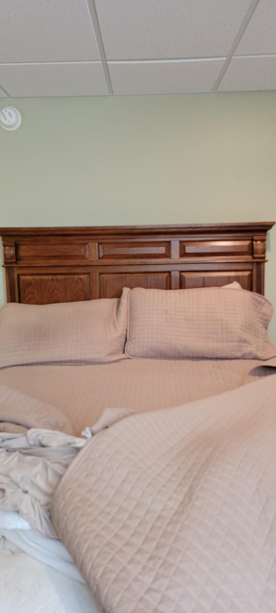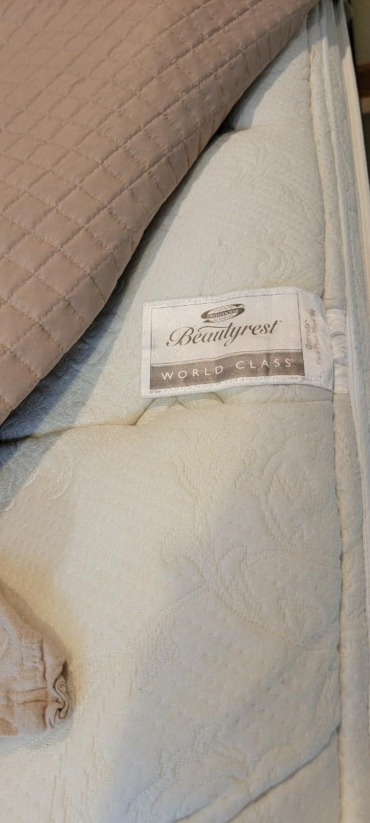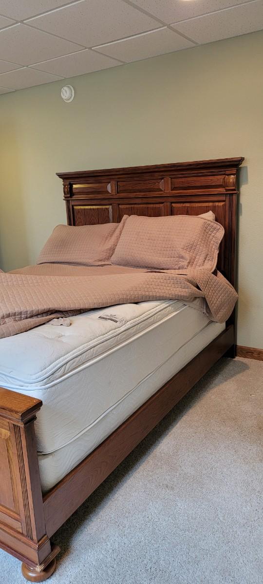 BB-45 Broyhill head/footboard with Beauty restoration World Class pillow top mattress, and all bedding in photo. Wear on wood.