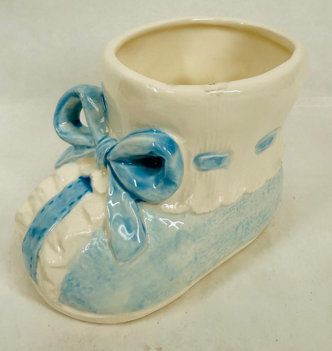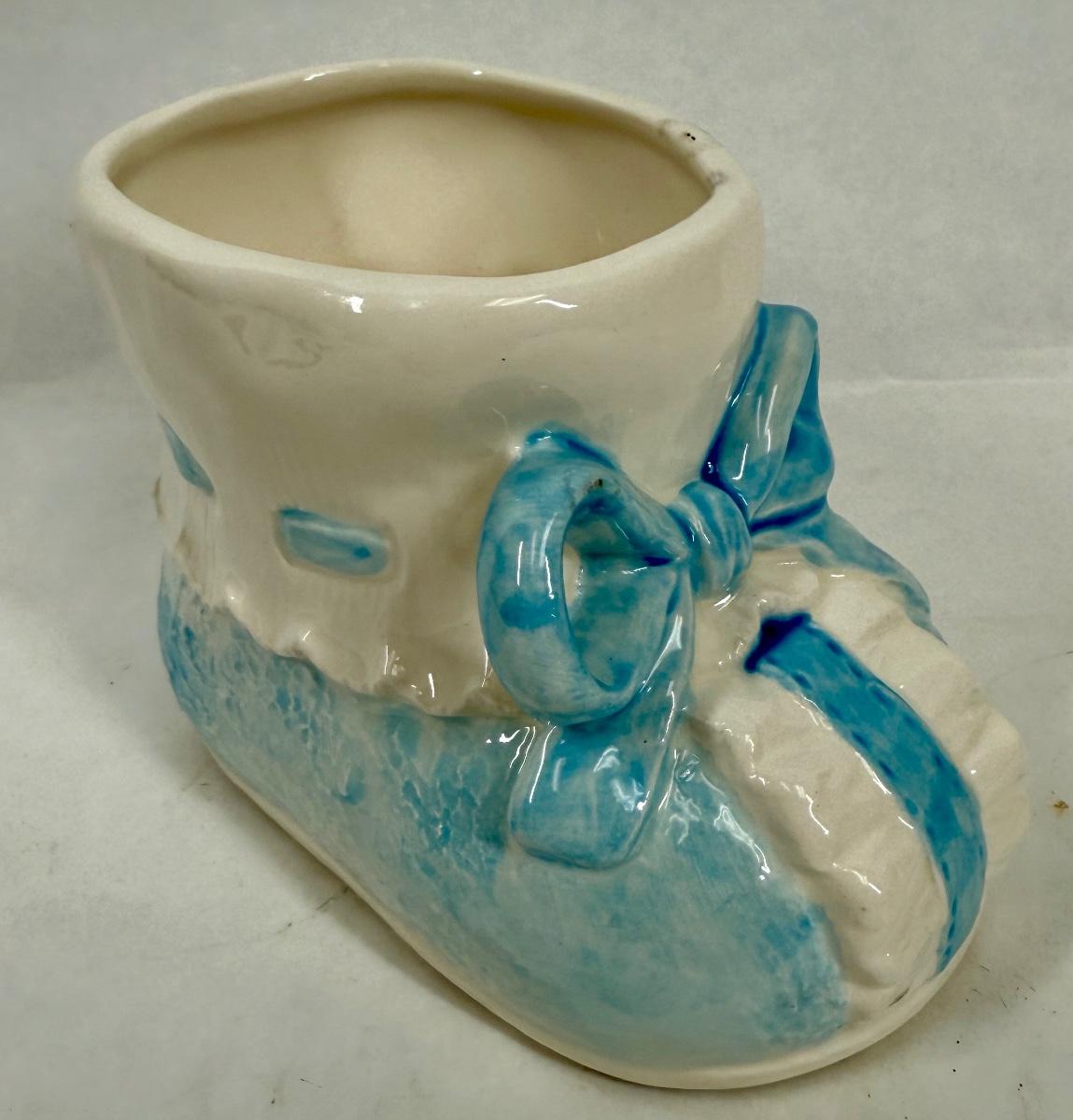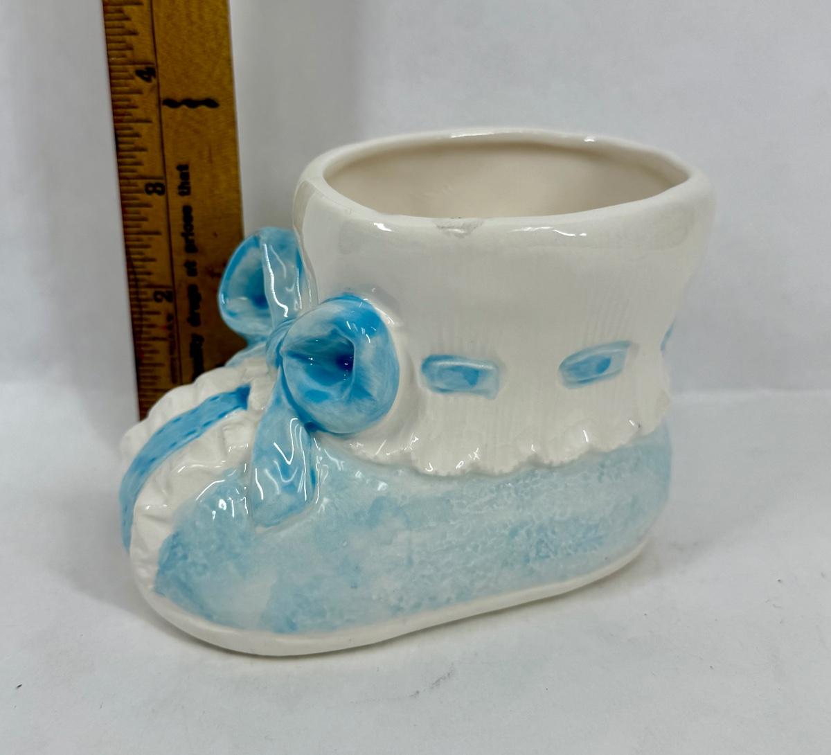 Vintage Ceramic Baby Bootie Planter Baby Blue Shoe