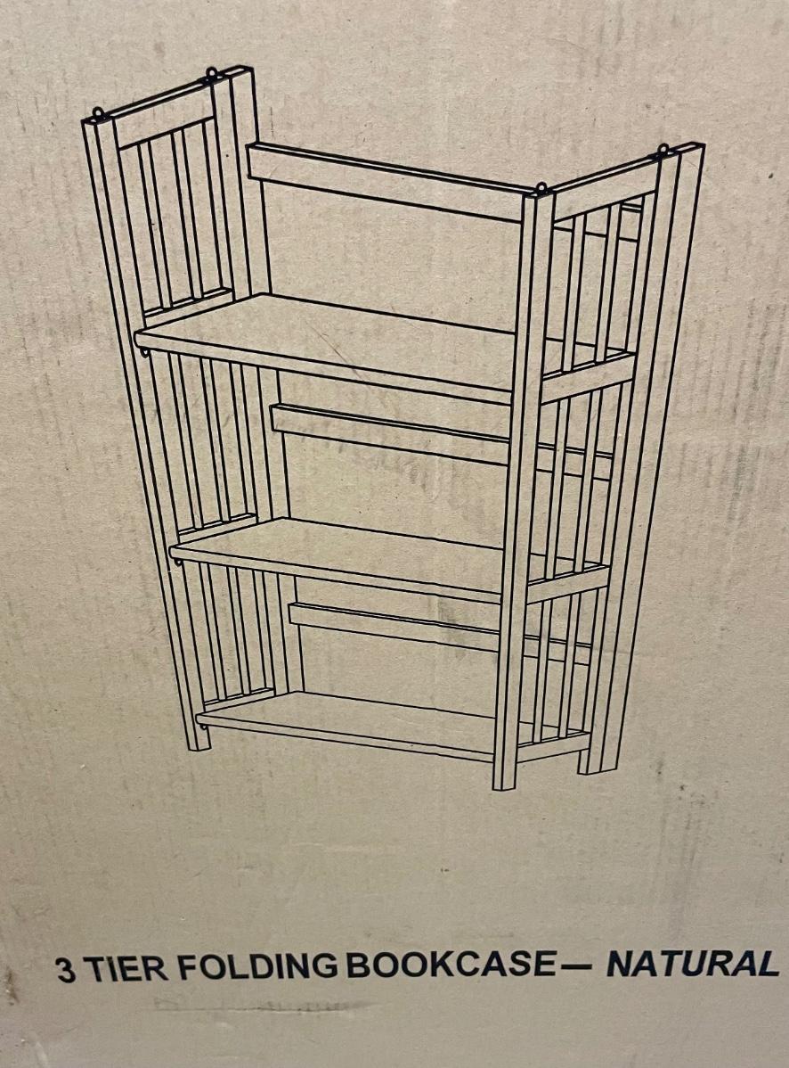 New in original carton, model 330-20U. Natural wood finish. See photos for what the shelf looks like when opened to full size. 38” high x 27.5” wide x 11.5” deep.