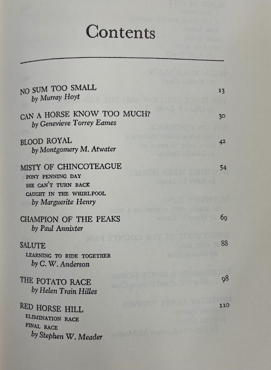 Published in 1964, collection of 19 horse-themed stories, including Misty of Chincoteague, Black Beauty, and The Black Stallion and the Red Mare. Good used condition.