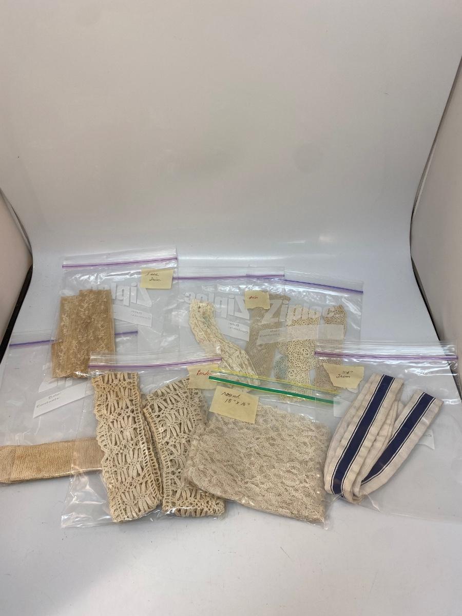 Vintage Antique Mixed Lot of Lace Trims for Fashion Sewing Crafts. Previous owner bagged and labeled these pieces, did not remove from bags. Various lengths, there is discoloration from age.