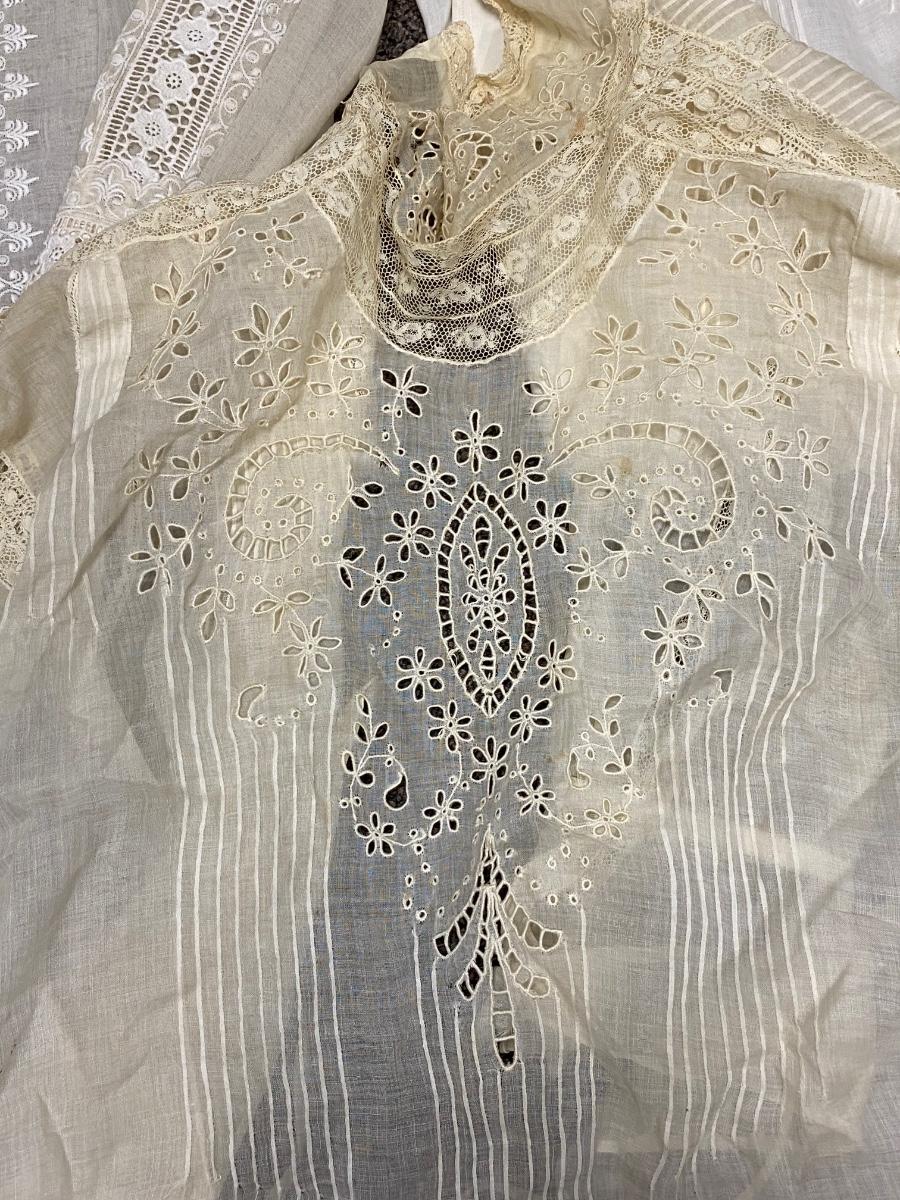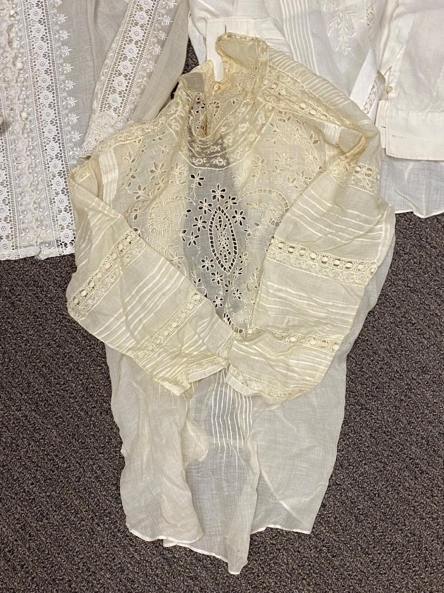 Lot of 3 Vintage Victorian White Cotton Blouses Button Shirts Gibson Girl Romantic. Discolor from age. No holes. Size medium.