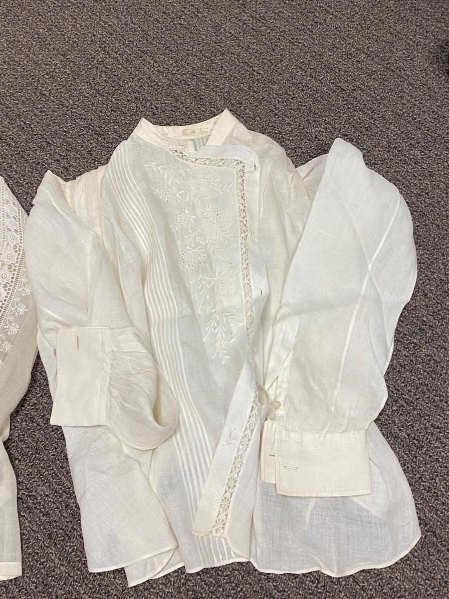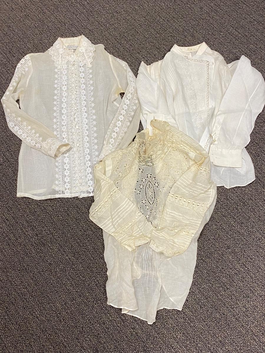 Lot of 3 Vintage Victorian White Cotton Blouses Button Shirts Gibson Girl Romantic