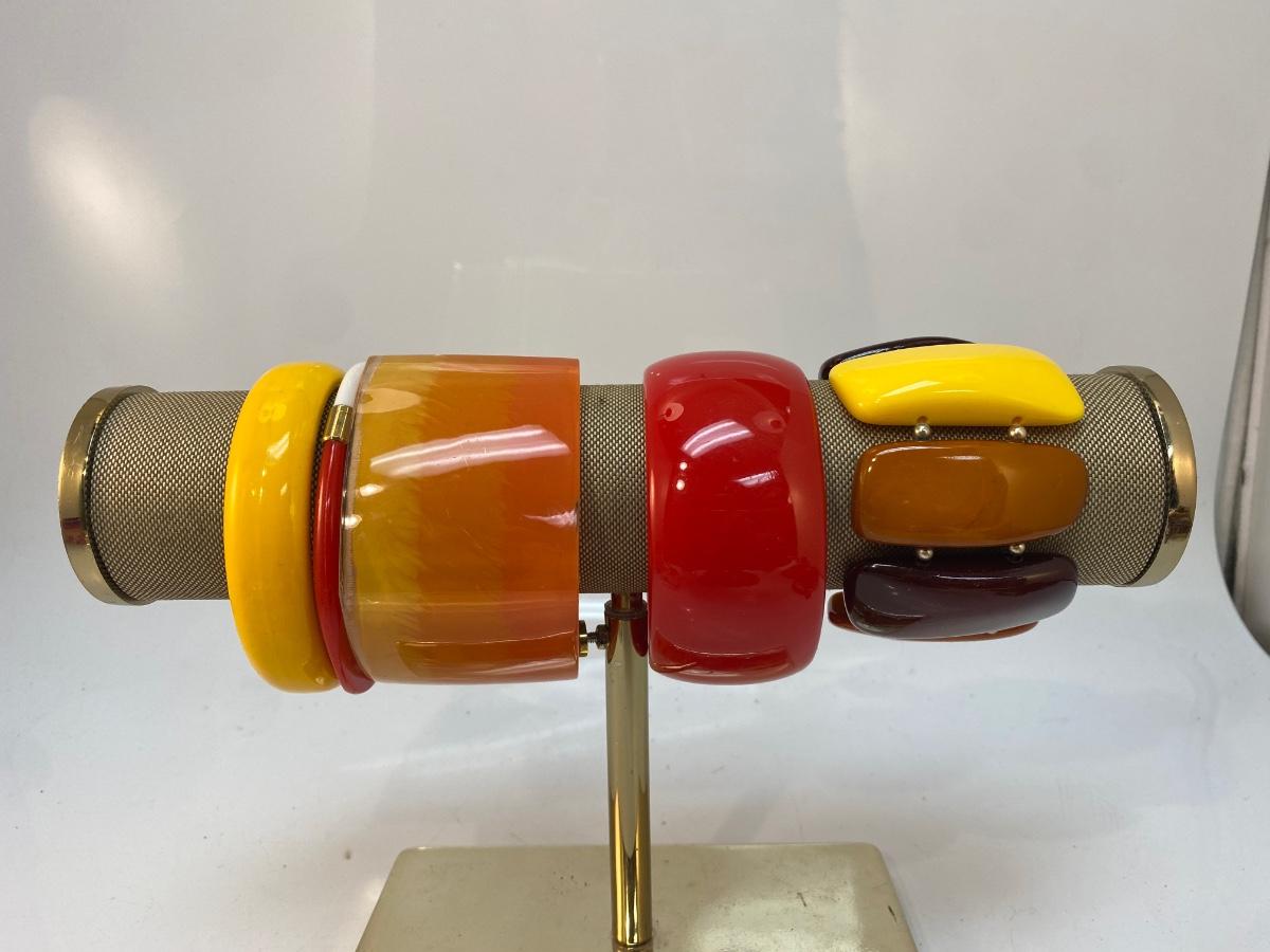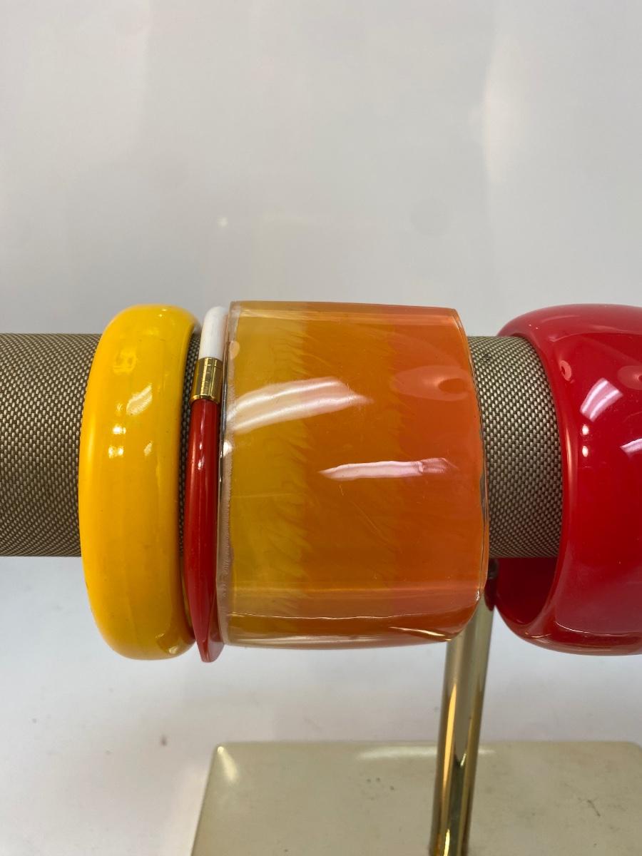 Red Yellow Orange Fashion Bracelet Lot Chunky Bangles Stretchy. Good condition.