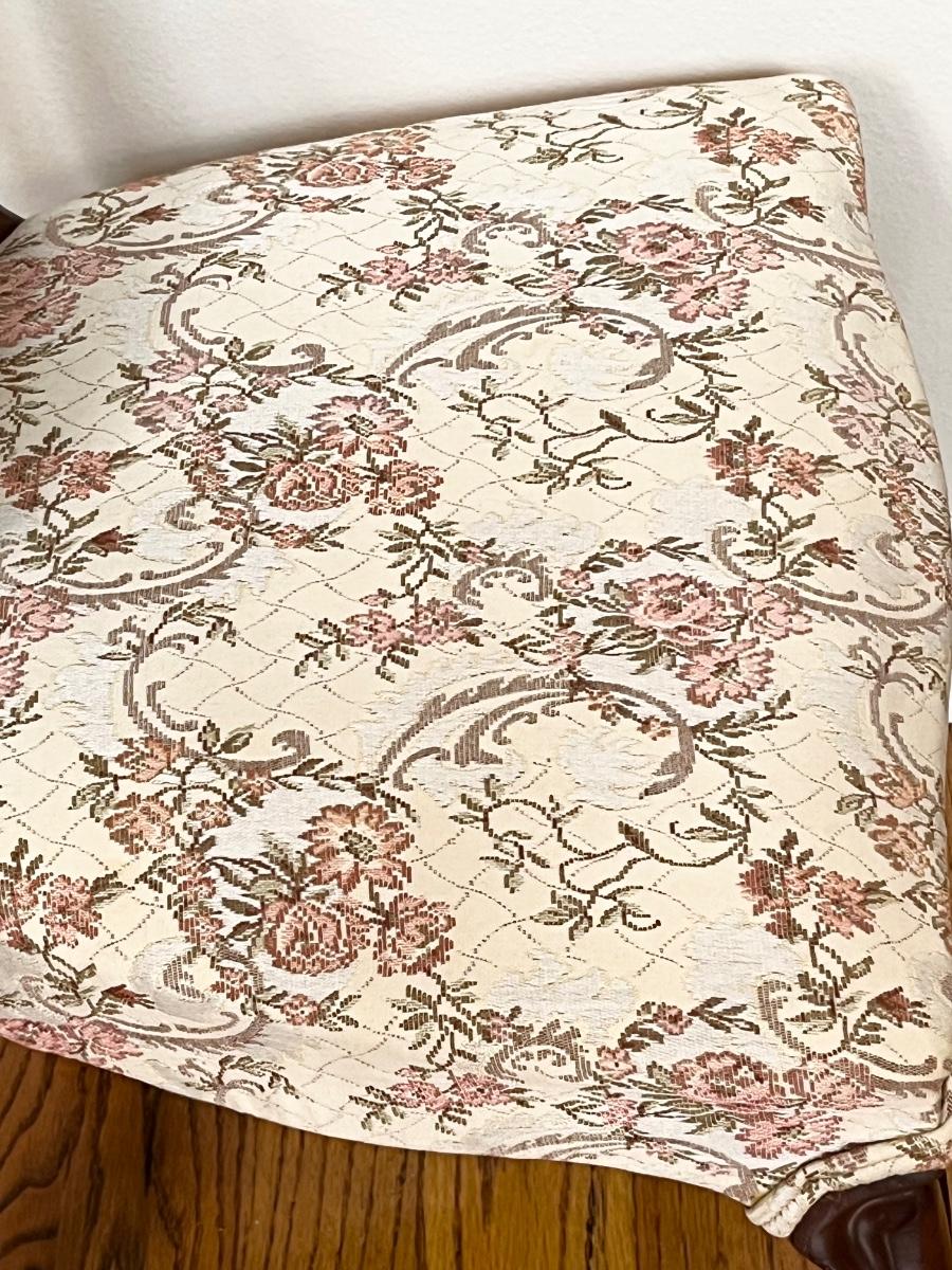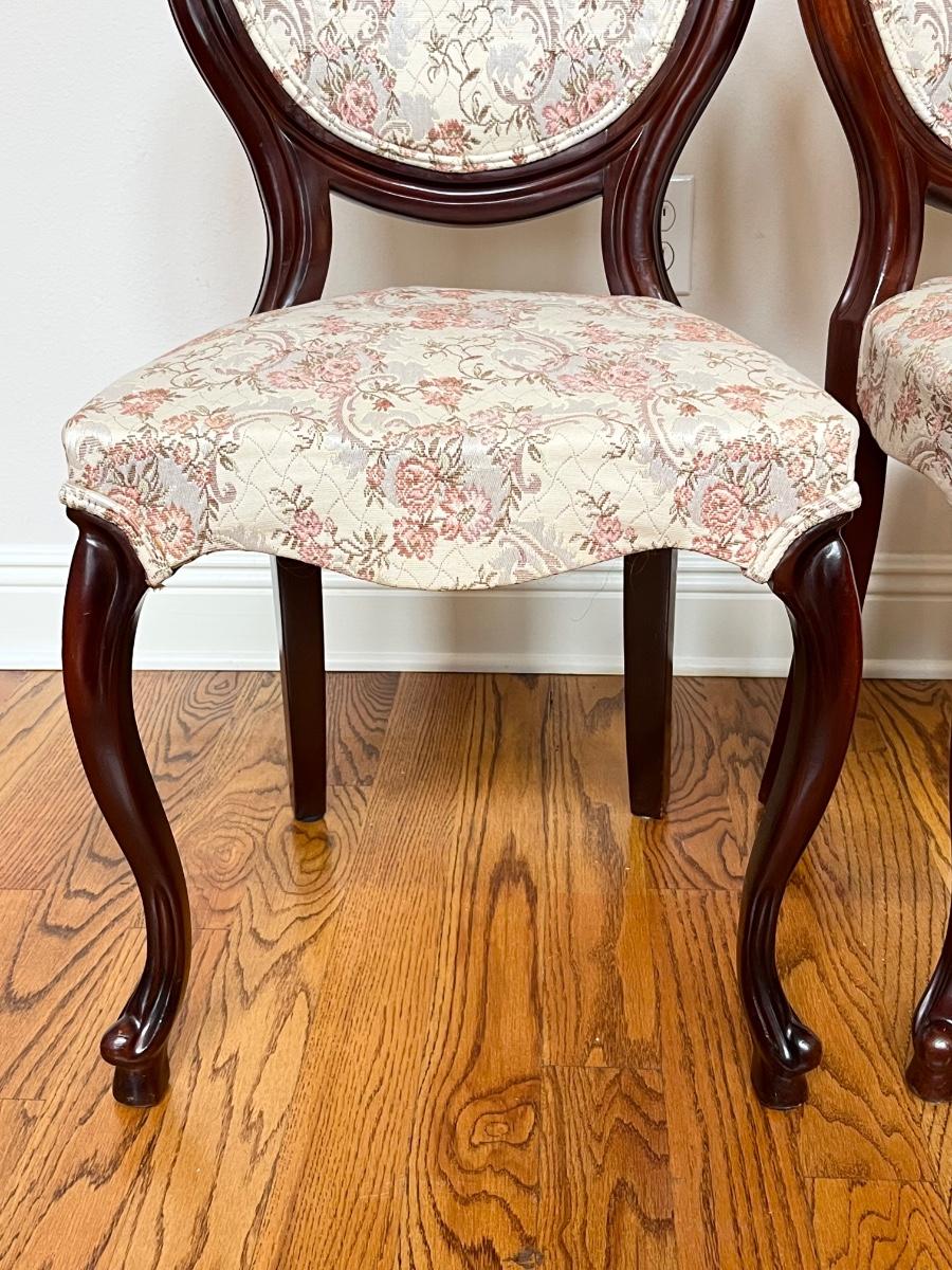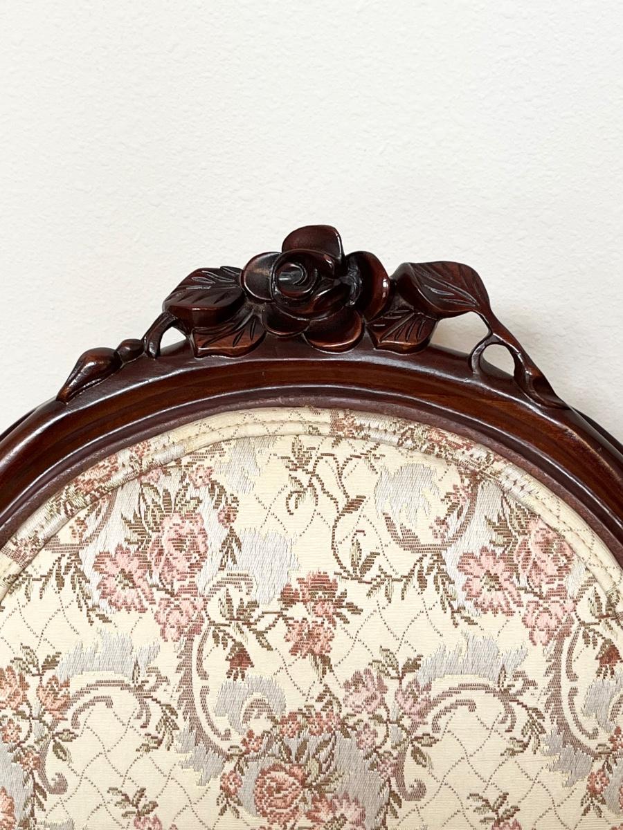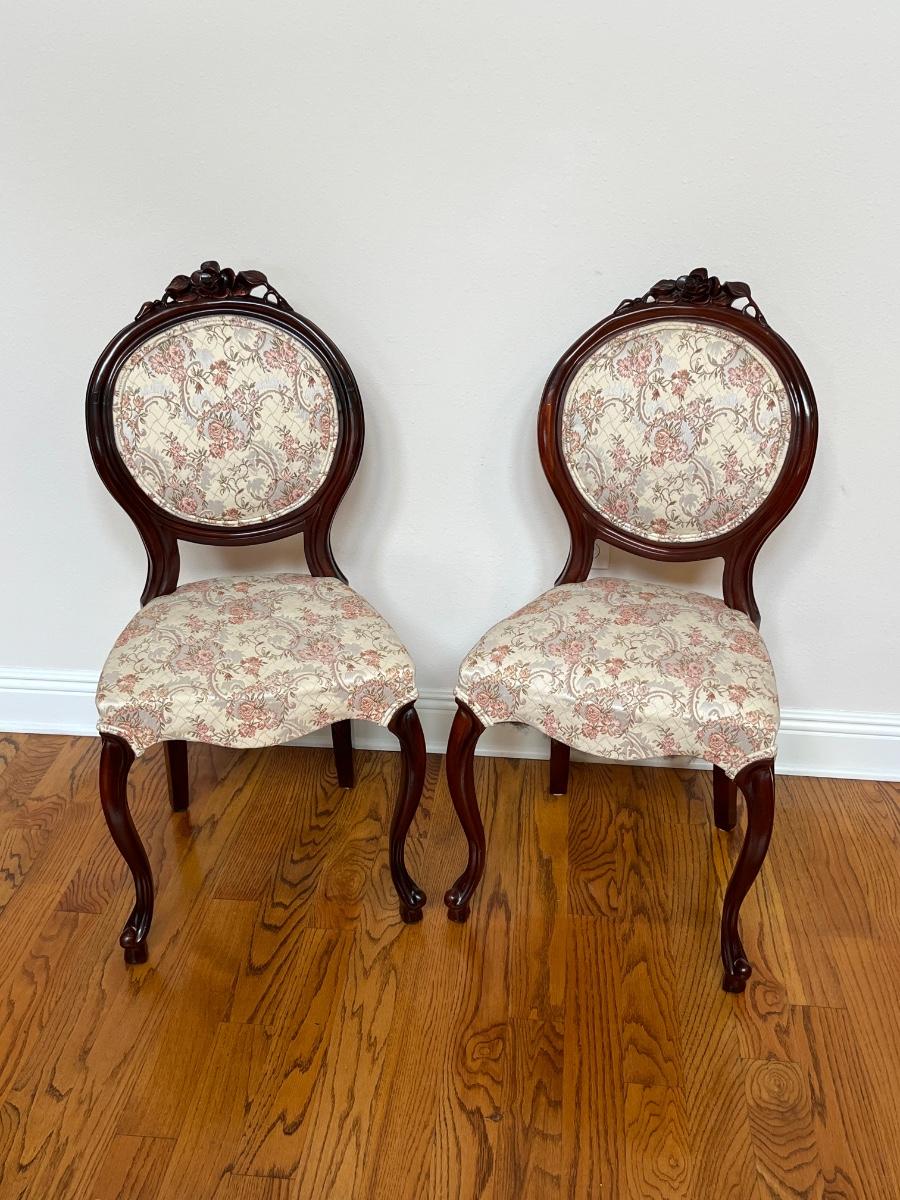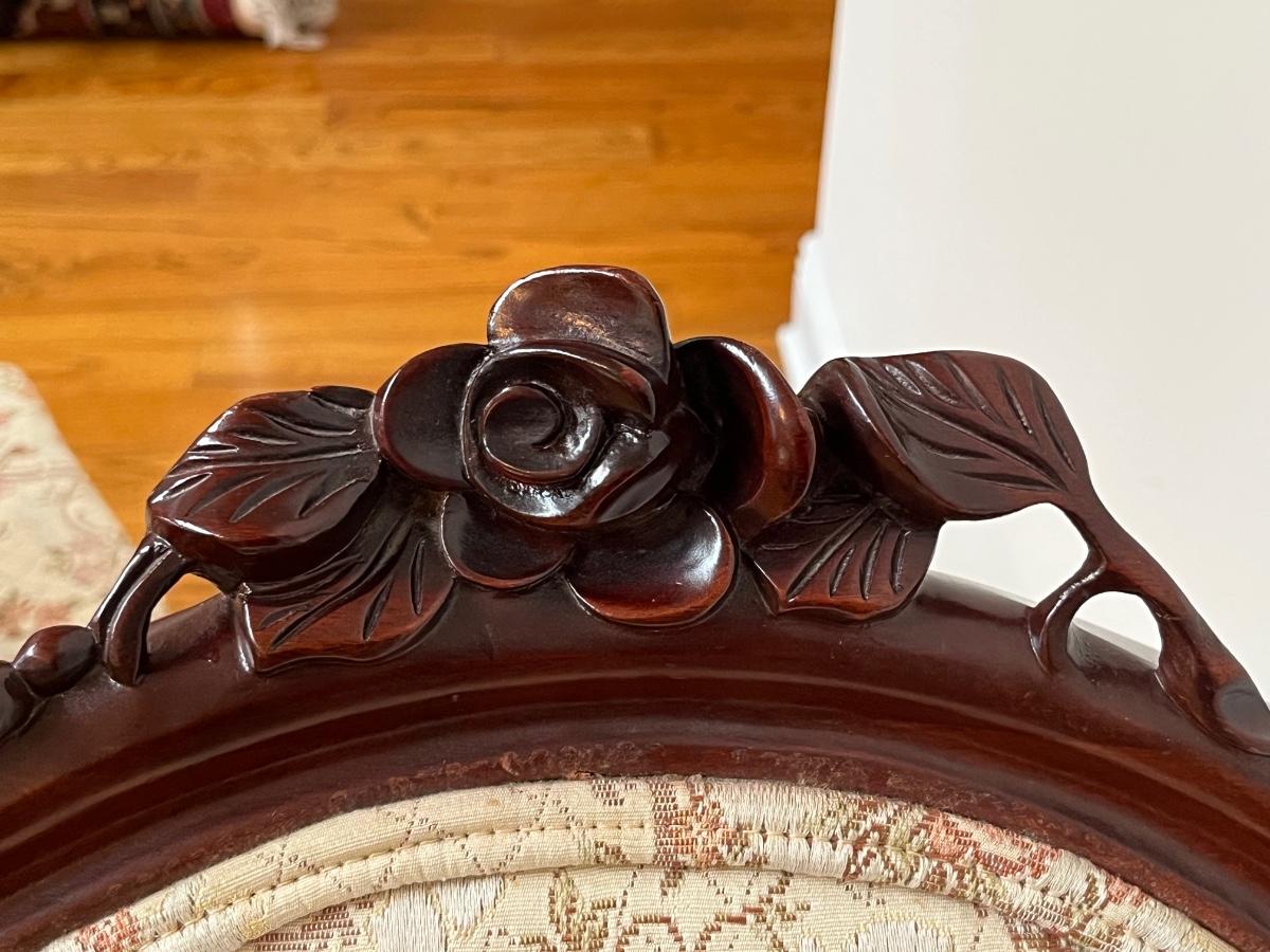 Pair ~ Victorian Dark Mahogany Rose ~ Carved Upholstered Parlor Chairs ~ Excellent