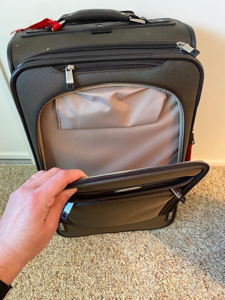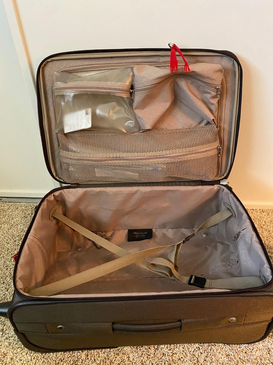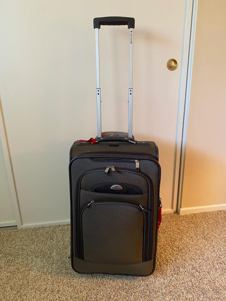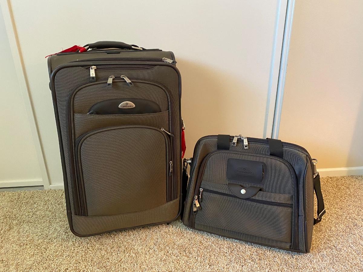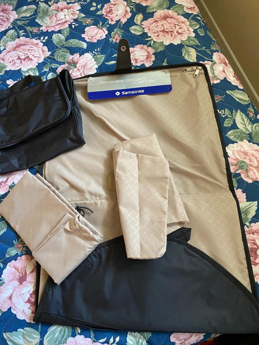 Samsonite Luggage Rolling Carry On Case with Over Night Bag Garment Bags. In good used condition.