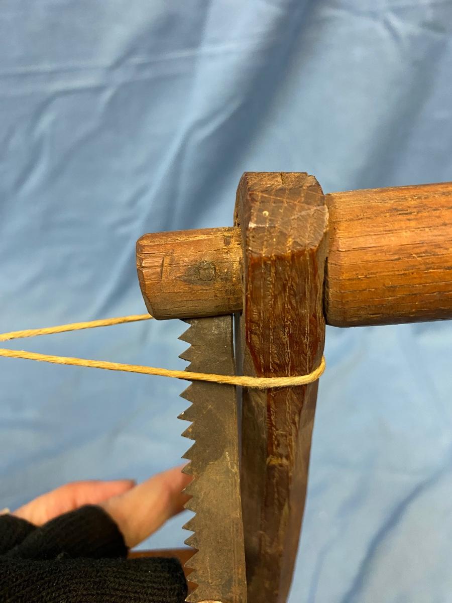 Antique 19th Century Primitive Handmade Wood Frame One Man Bow Saw