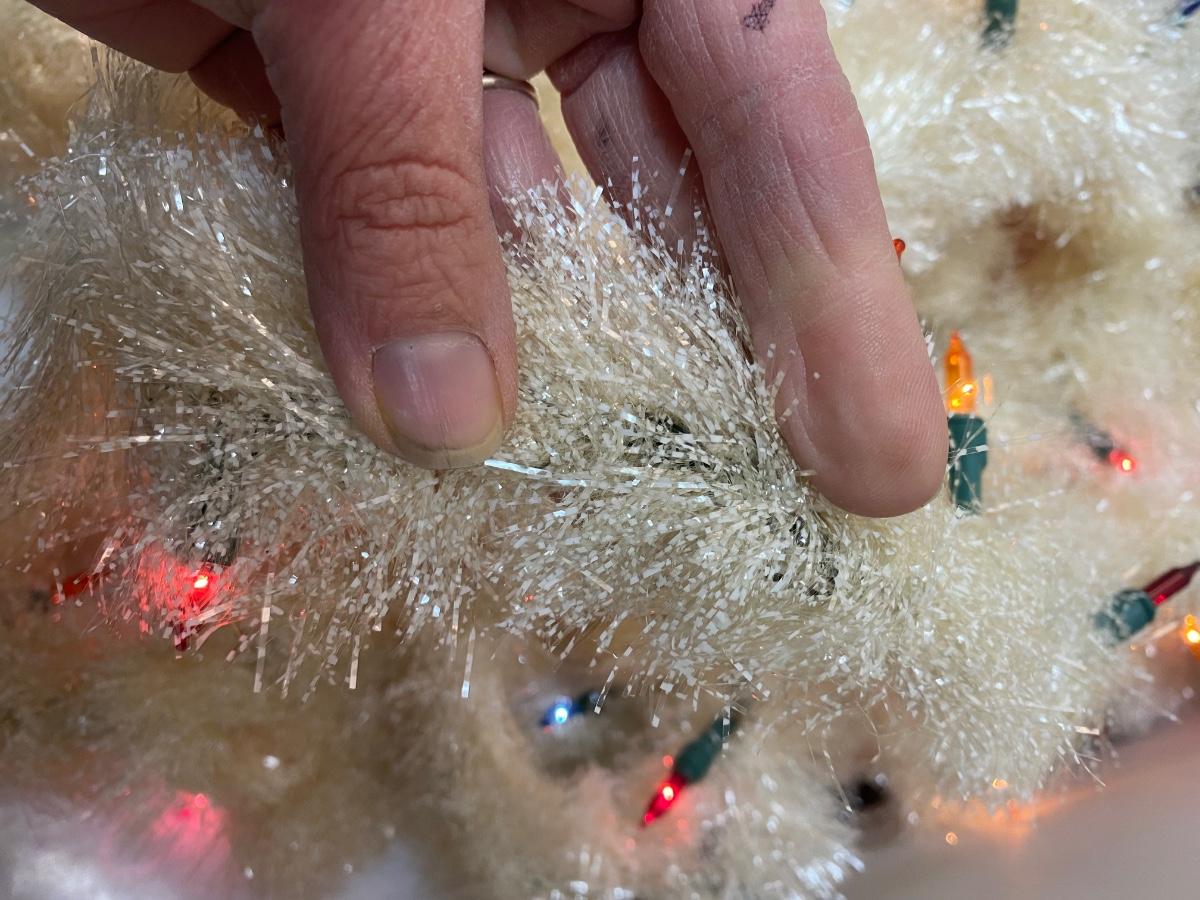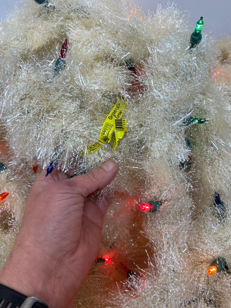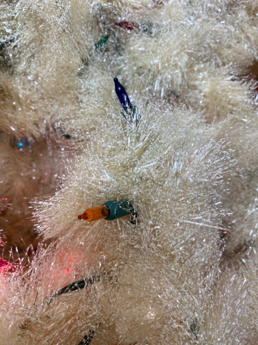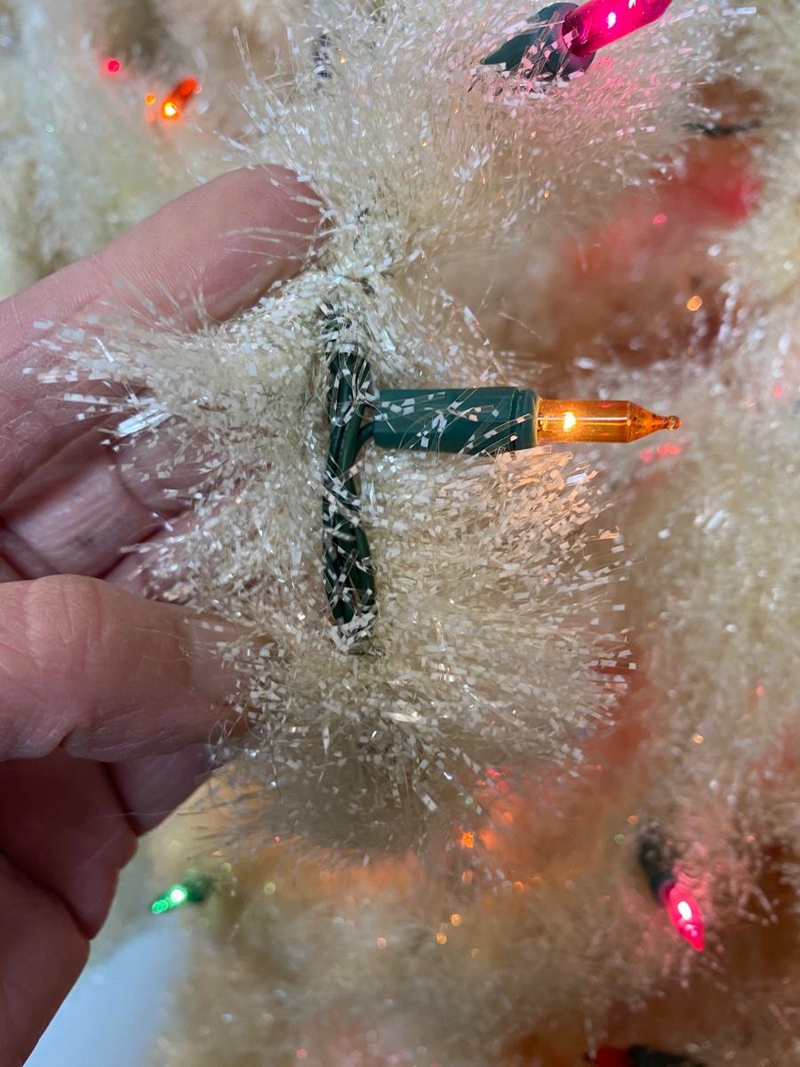 Vintage White Metallic Lighted Christmas Tree Holiday Garland. Multiple light strands. Most lights working.