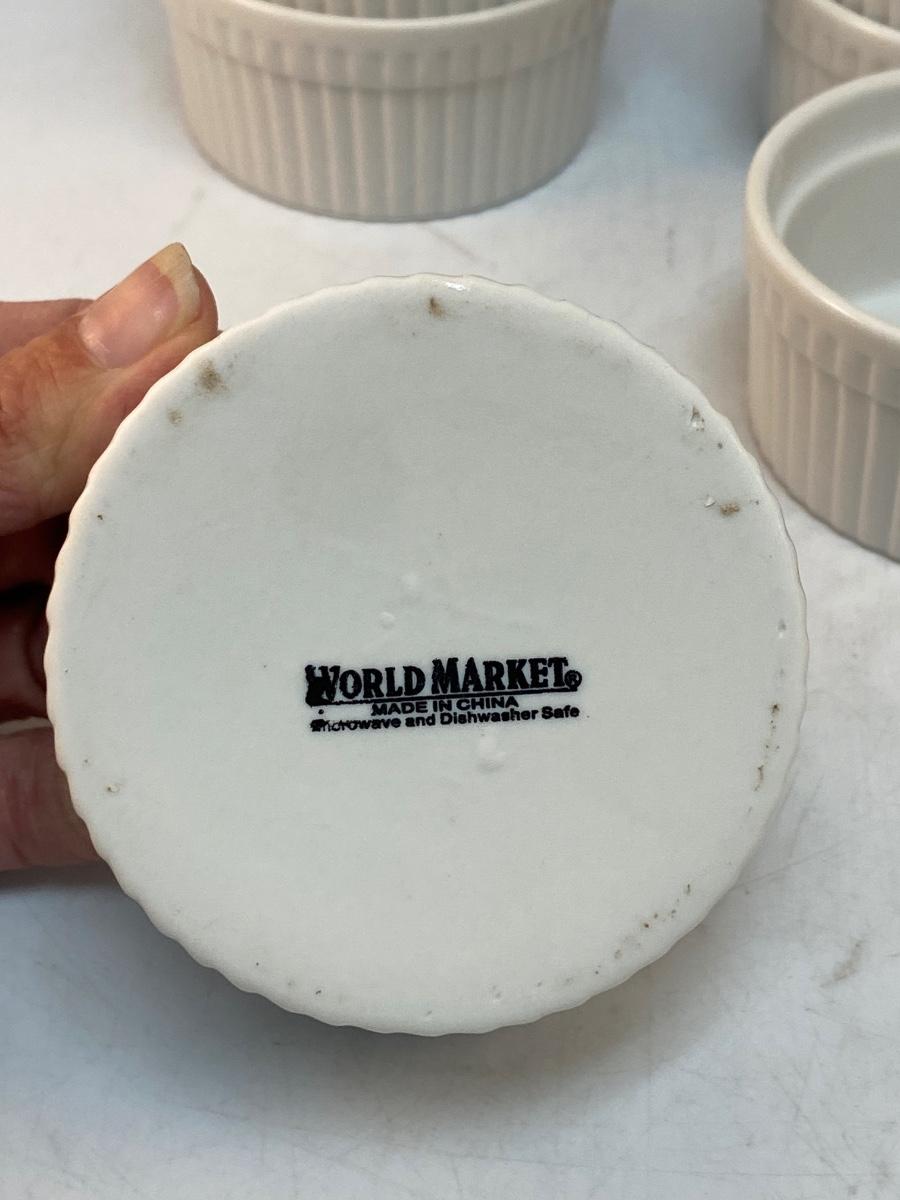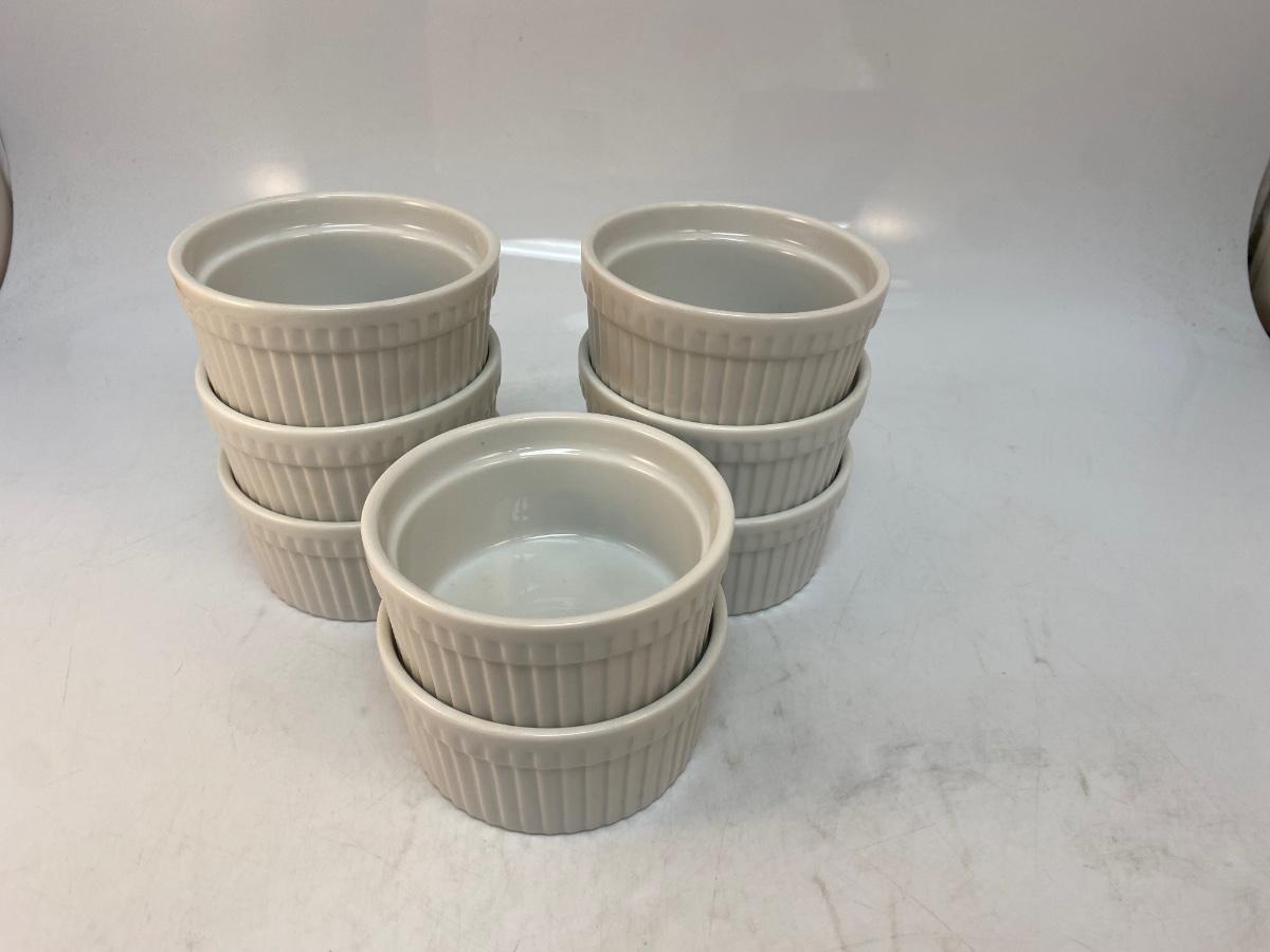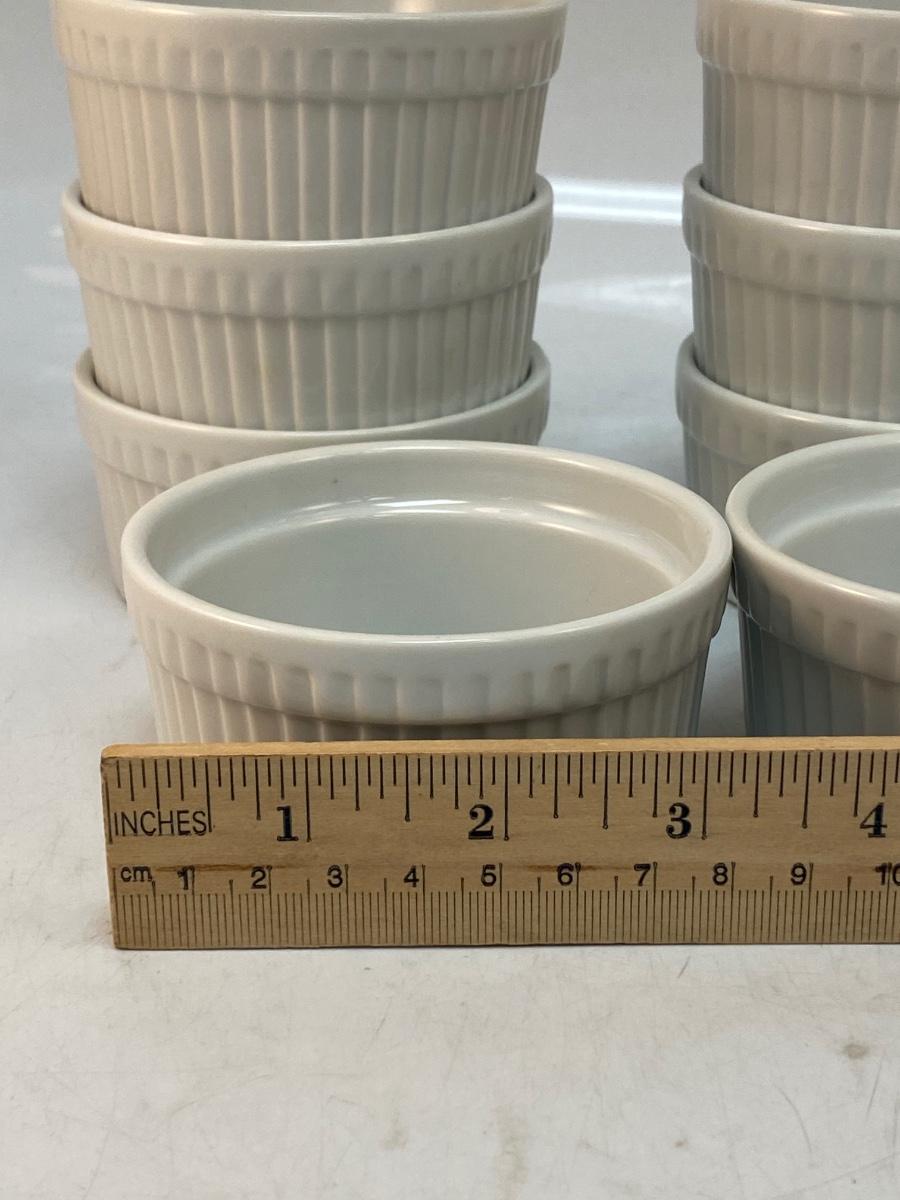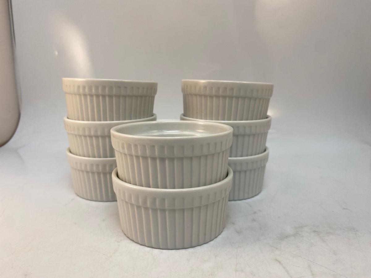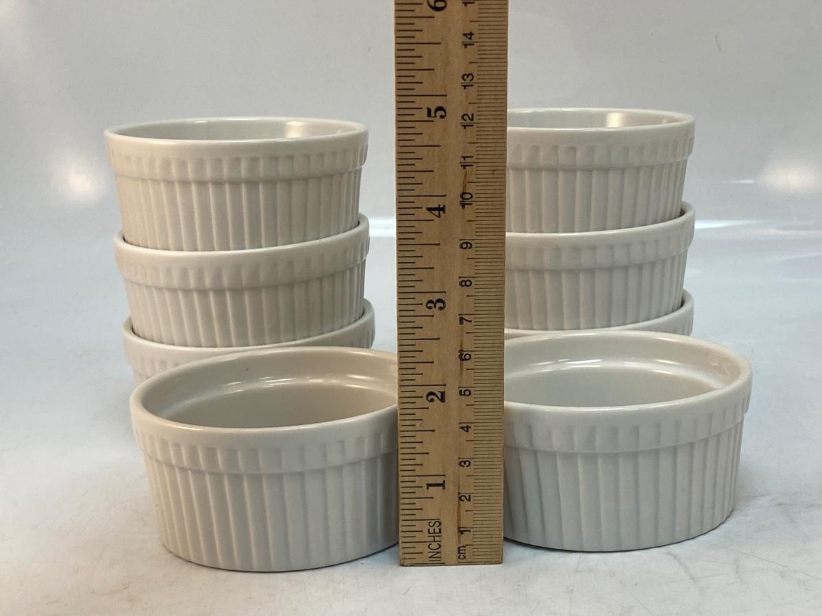 Set of 8 Small Ribbed White Porcelain Ceramic Ramakin Dishes World Market