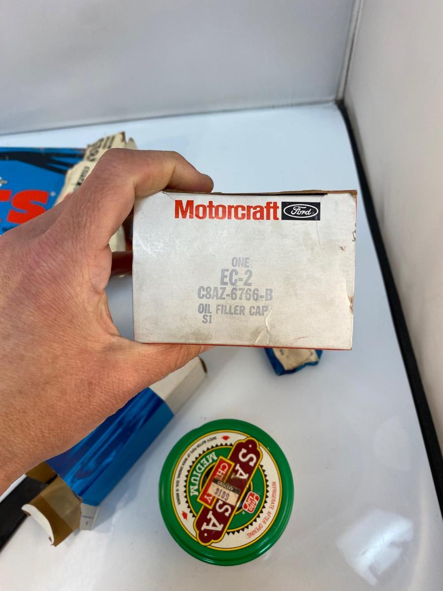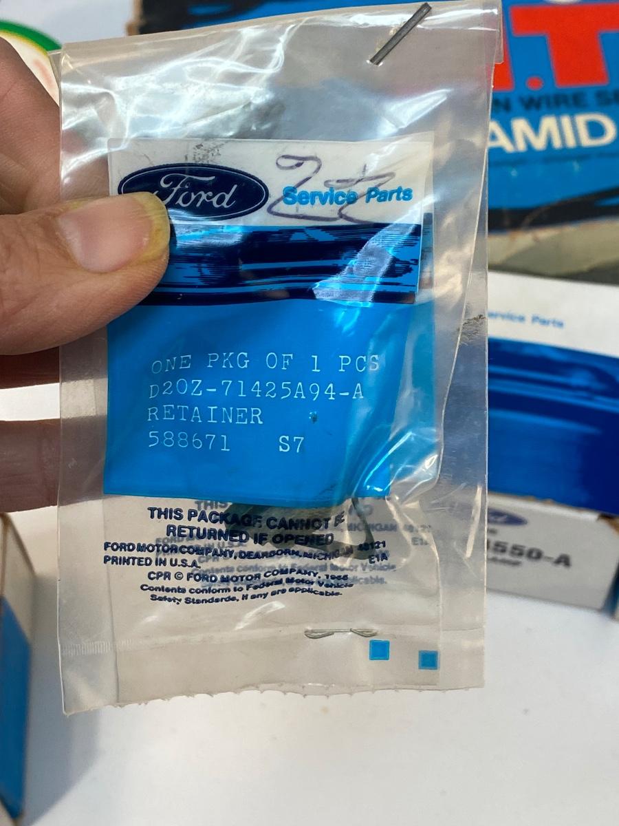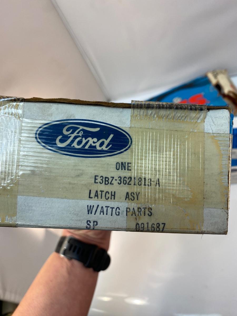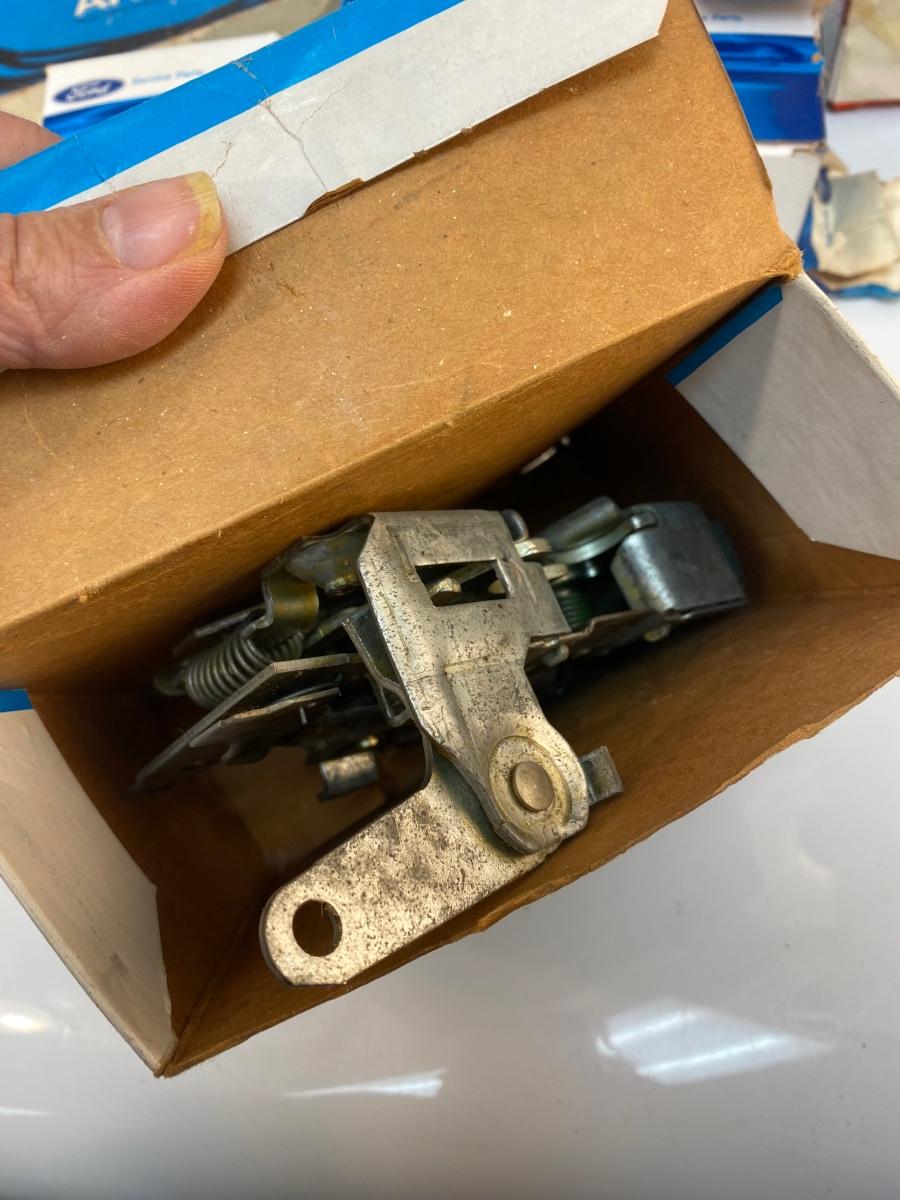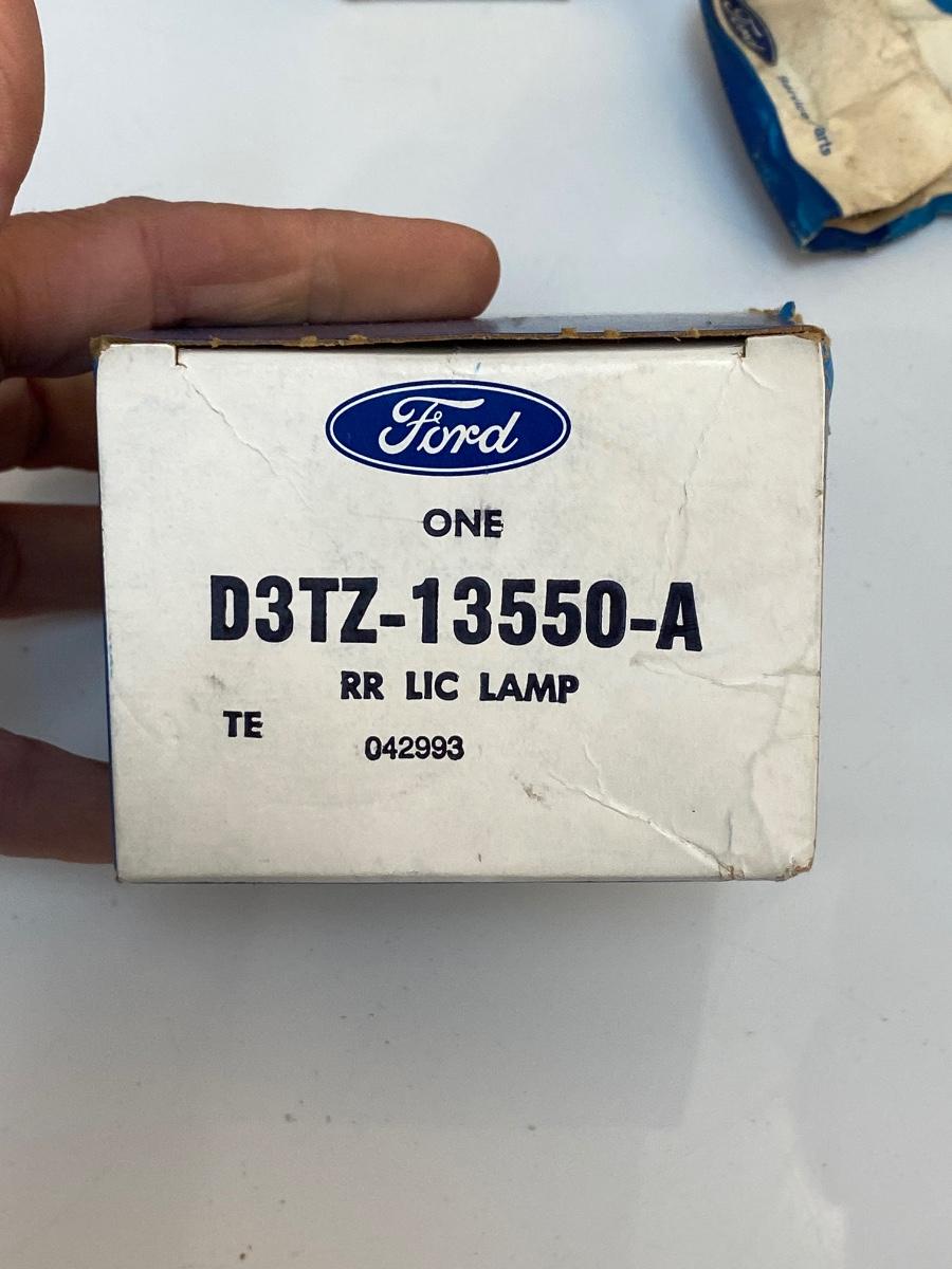 Mixed Lot of Vintage Ford Car Parts. Various parts, look unused. Part numbers come up as parts for late 1970s Broncos, F100, and F250 compatible. Headlight knobs, license plate lights, door latch all fit those years.