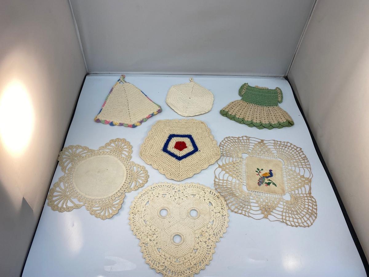 Lot of 7 Handmade Crochet Knit Tatted Doilies Coasters Table Protectors