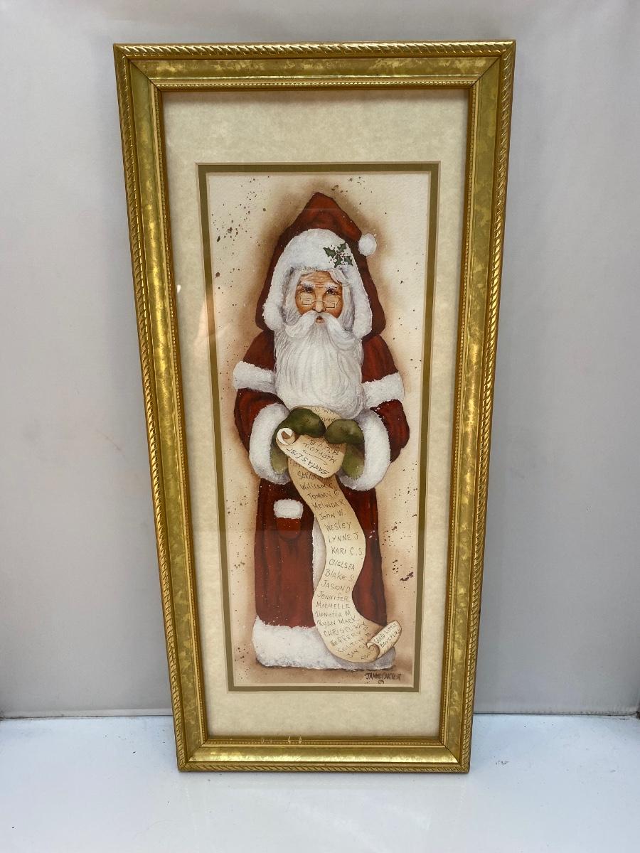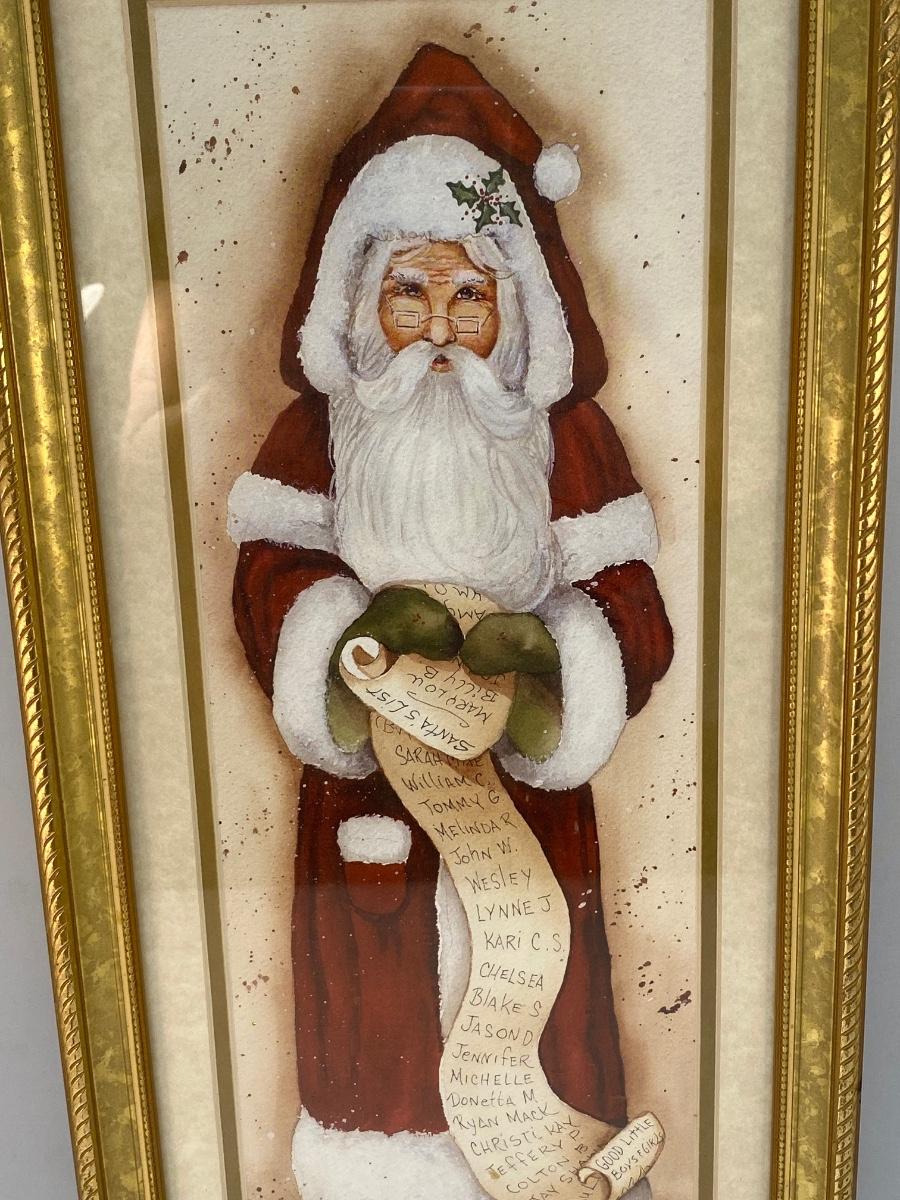 Folk Art Rustic Santa Claus Holding His List Framed Christmas Holiday Art