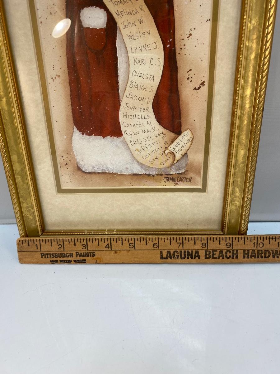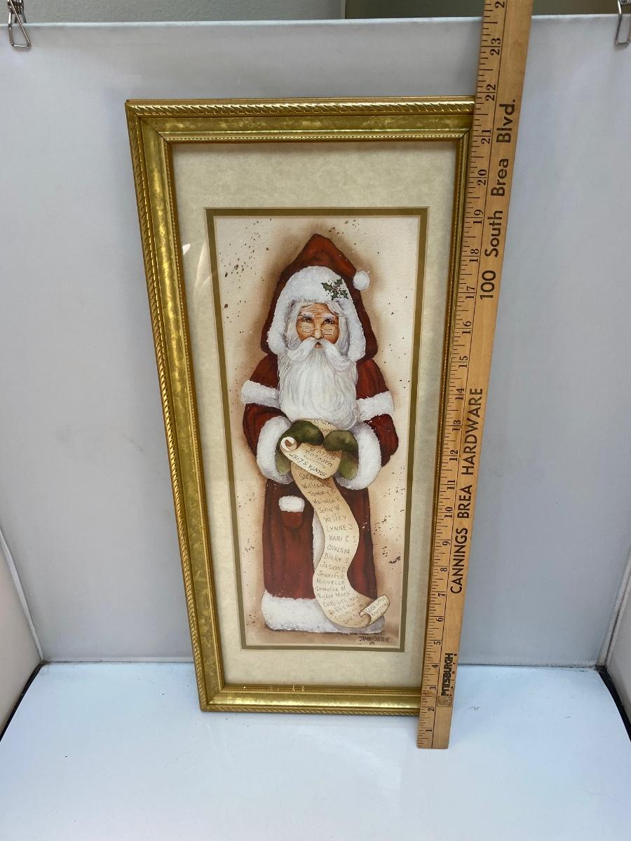 Folk Art Rustic Santa Claus Holding His List Framed Christmas Holiday Art. In good condition. About 22"x9.5" size.