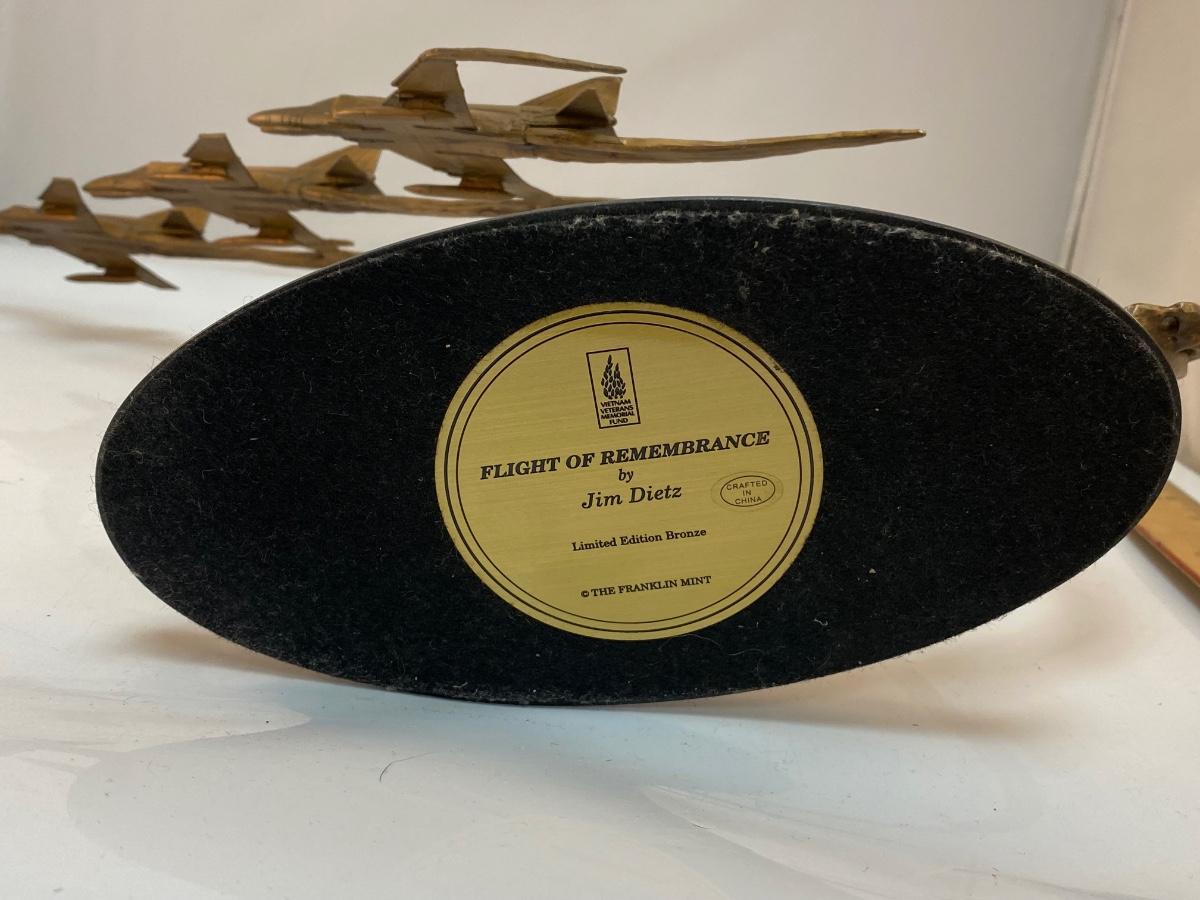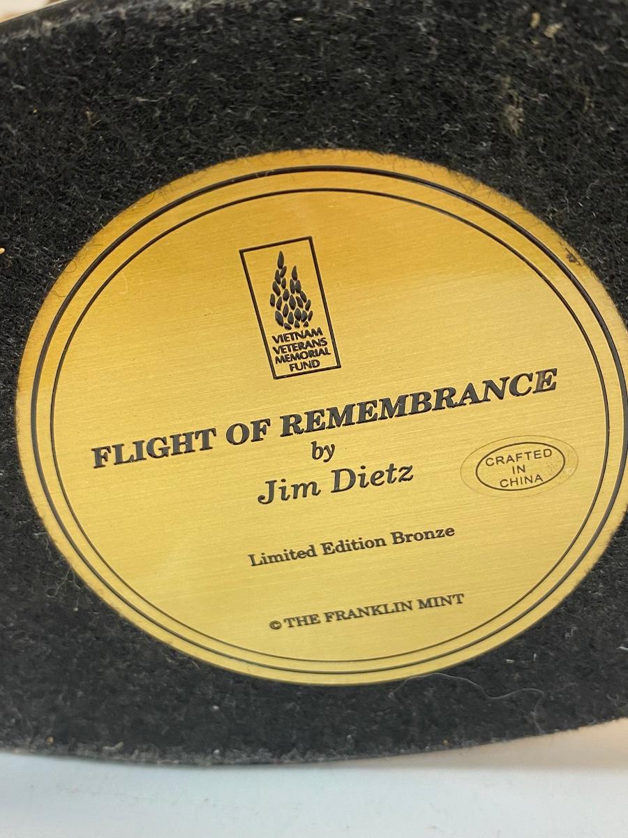 Flight of Remembrance by Jim Dietz Fighter Jet Limited Edition Bronze Statue Franklin Mint. In good condition. No COA but plaque on the underside of sculpture. Done in part with the Vietnam Veterans Memorial Fund.