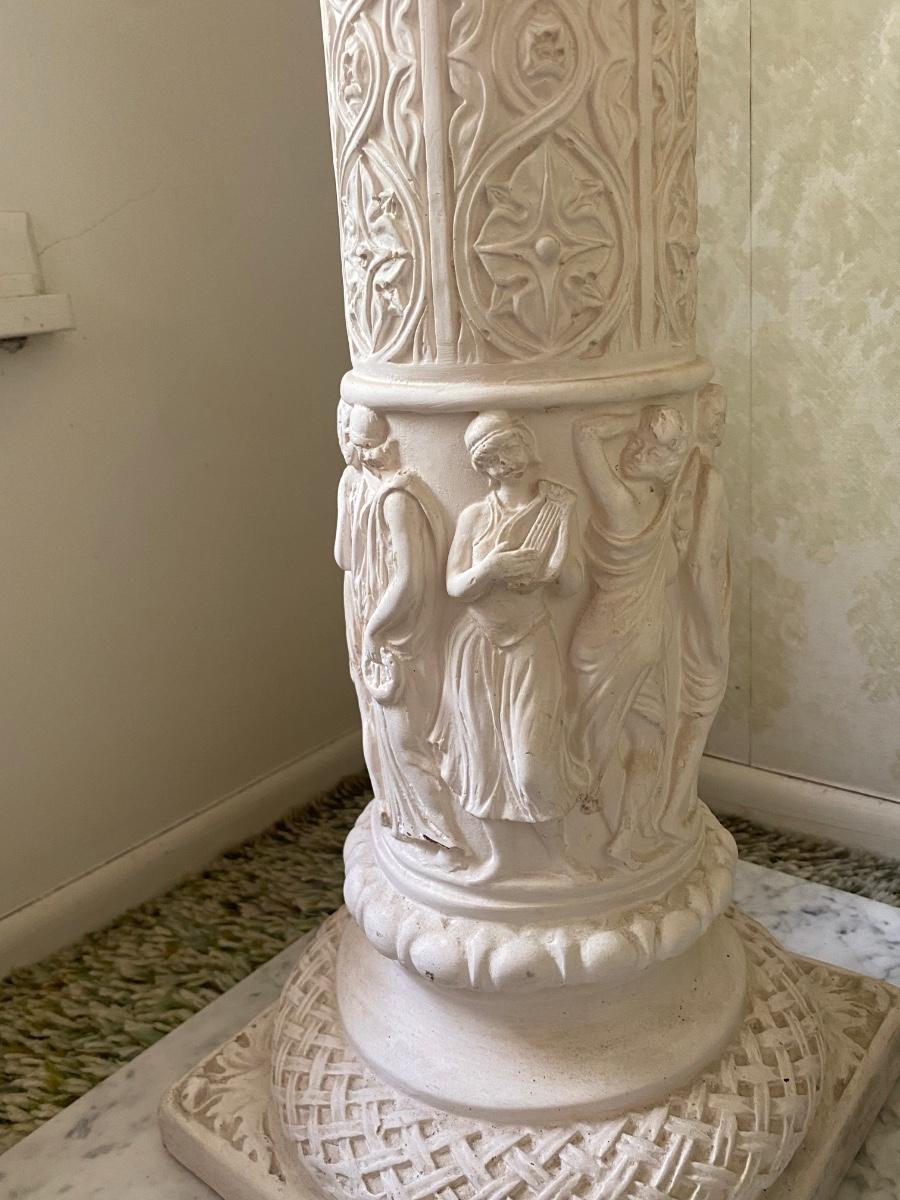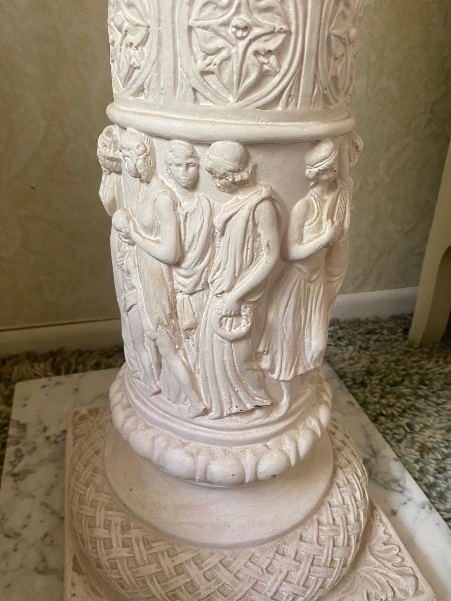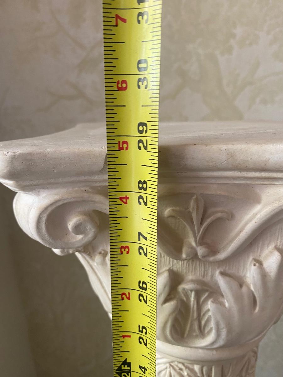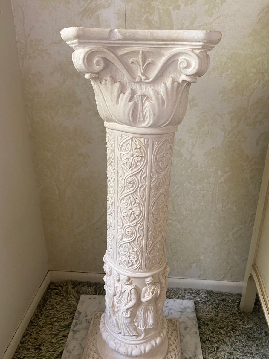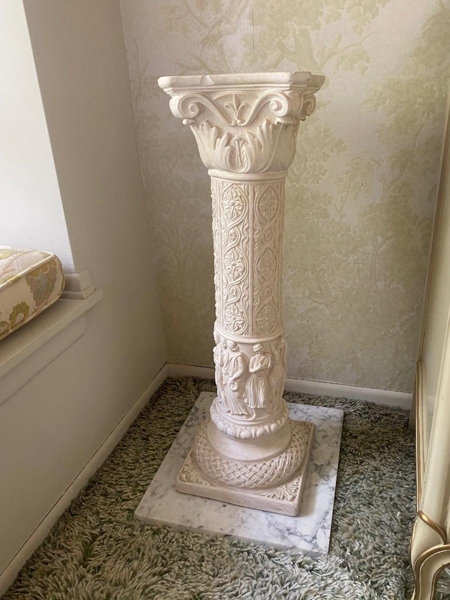 Vintage Plaster Roman Motif Pedestal Plant Stand with Marble Base