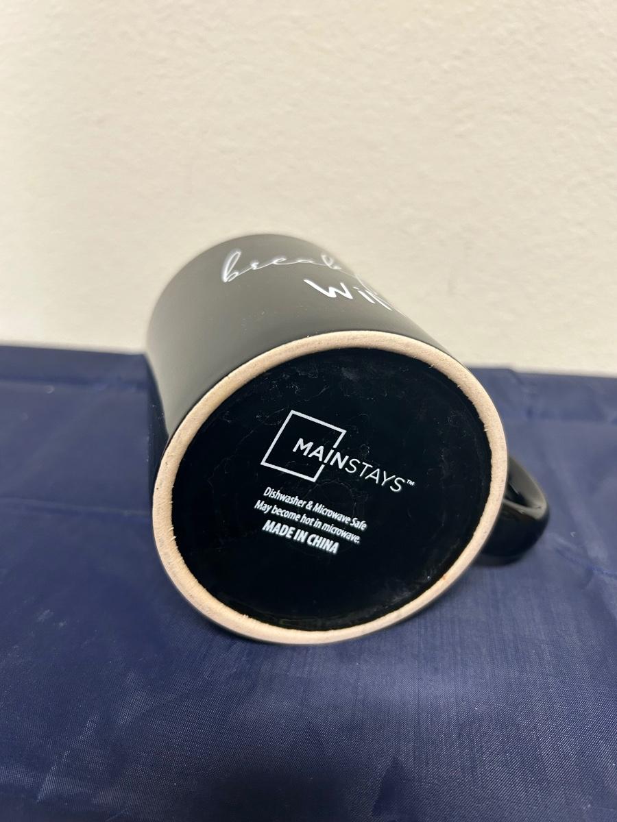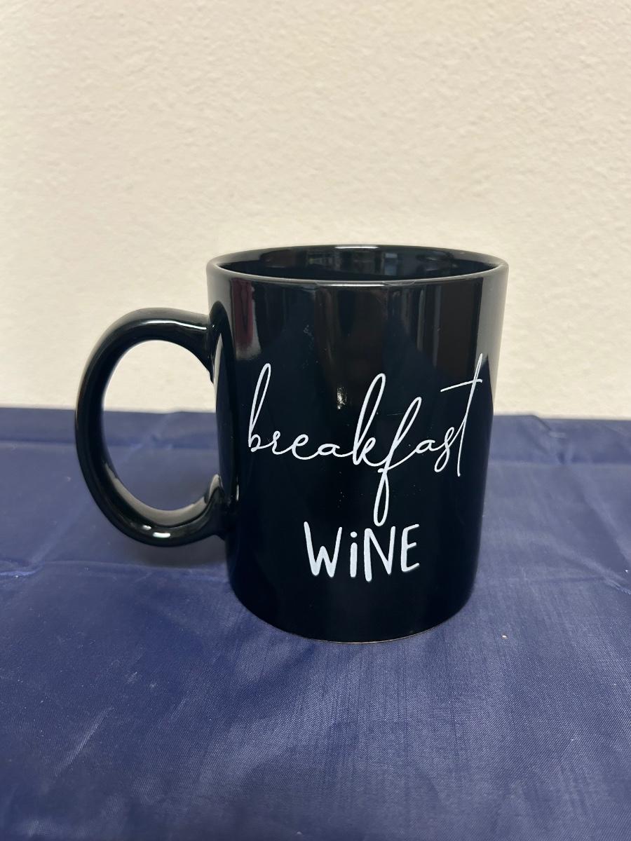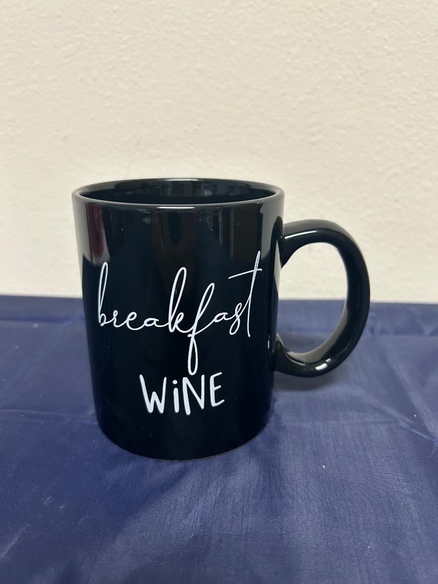 Novelty Funny Breakfast Wine Black & White Coffee Cup Mug. In good condition. From Mainstays (Walmart).