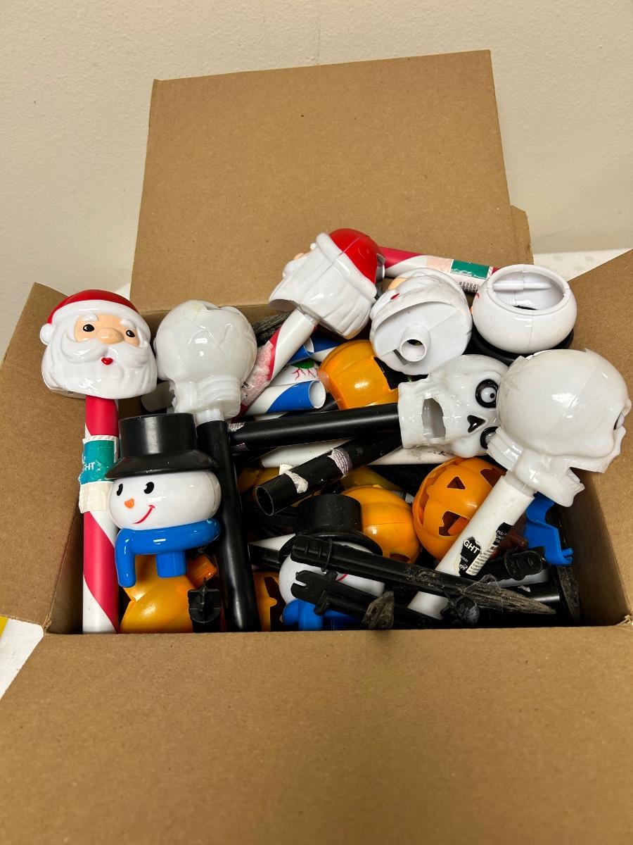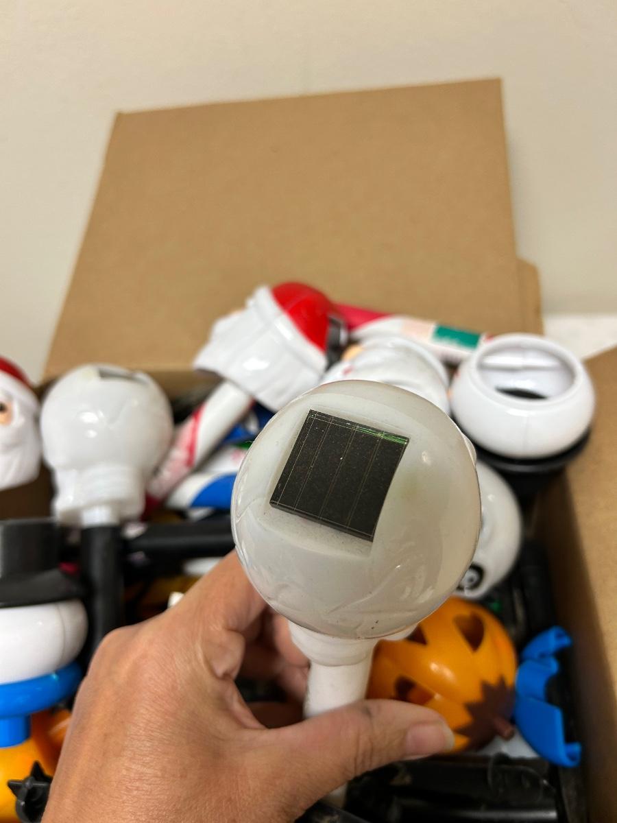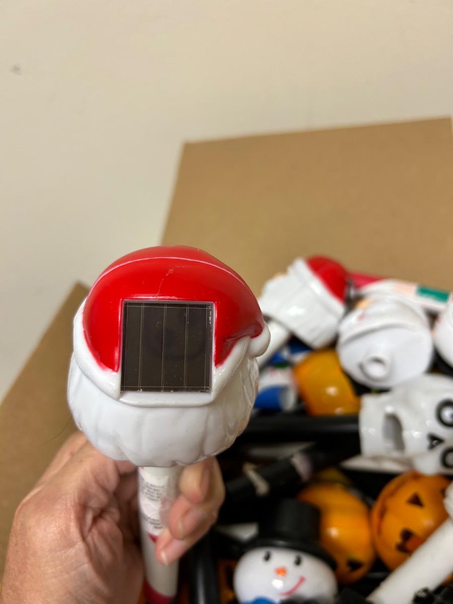 Seasonal Mixed Holiday Halloween Christmas Solar Garden Yard Lights Untested. Plastic solar lights, not sure if they work but would display well either way.