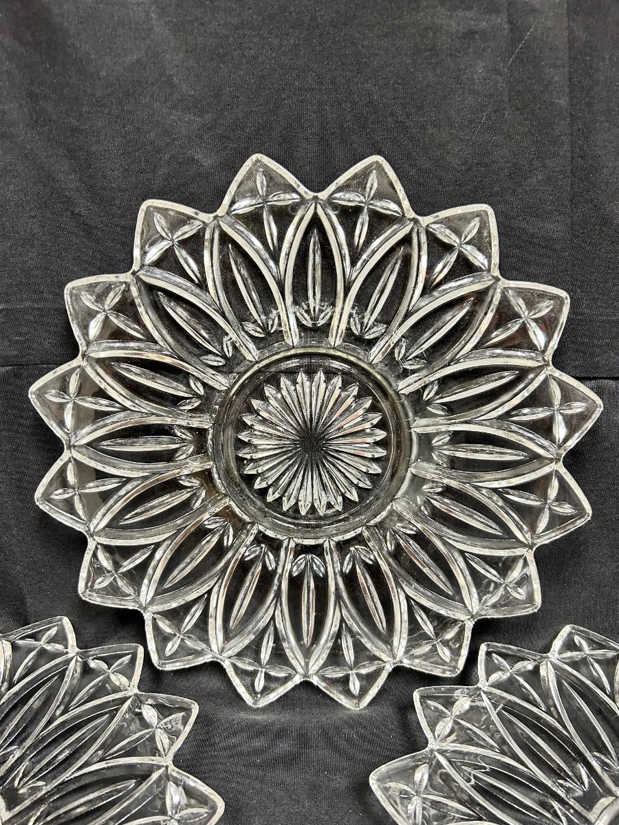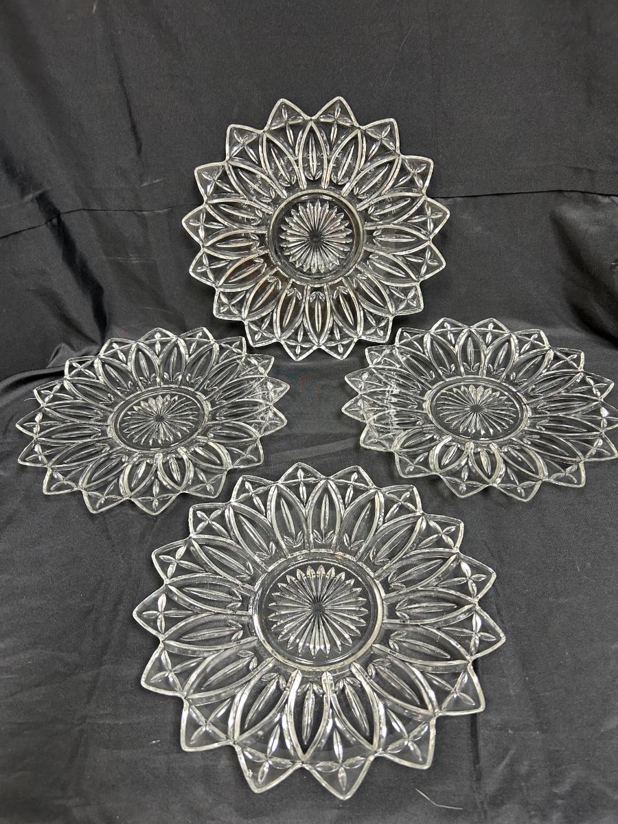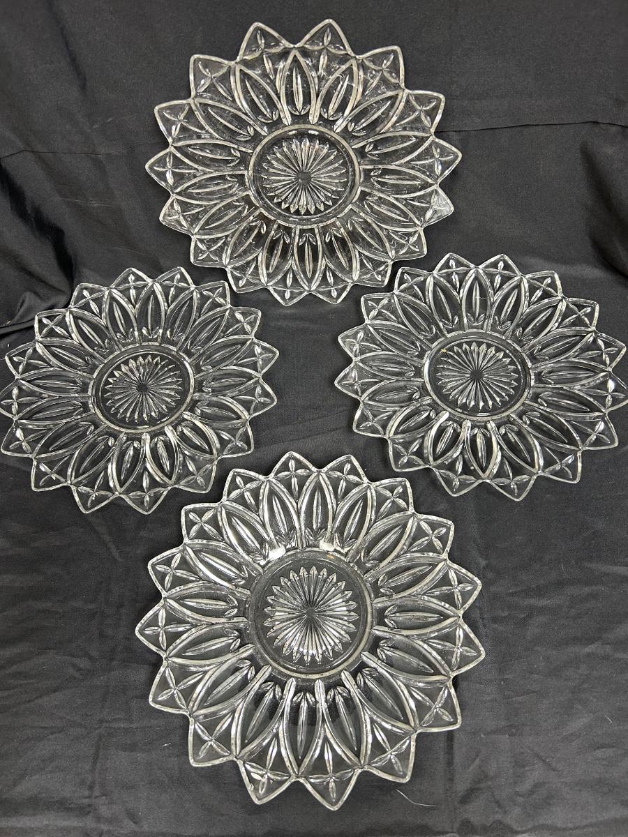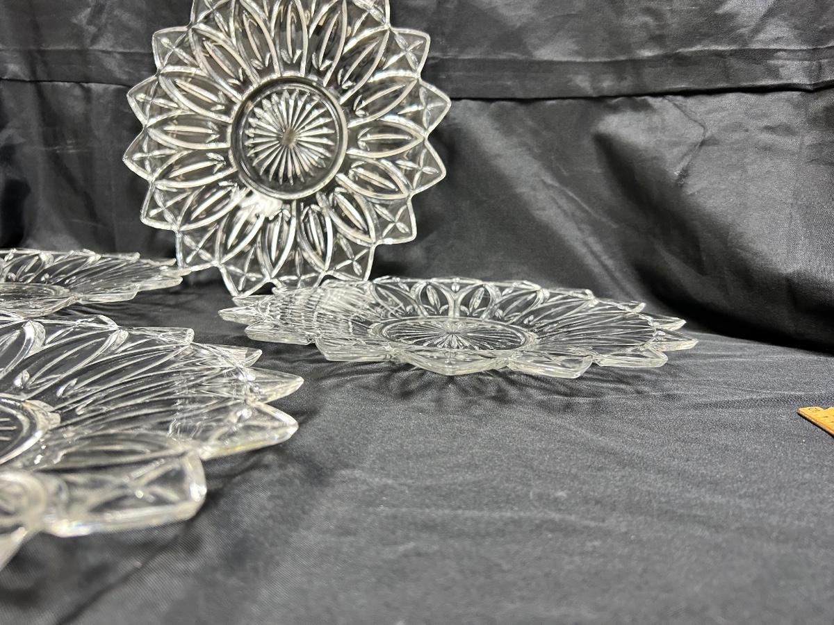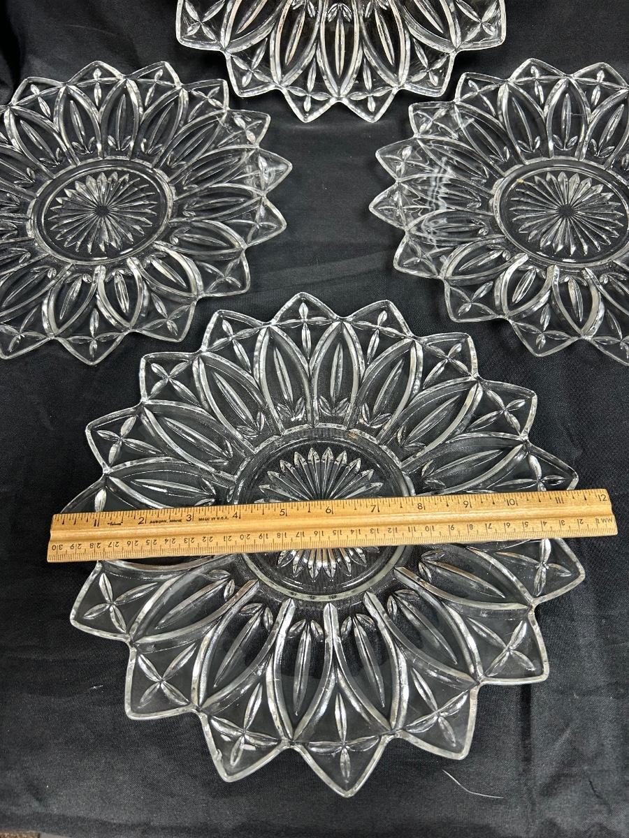 Set of Four Flower Shaped Federal Clear Glass Petal Serving Dishes. Lot B. No chips. 12" size.