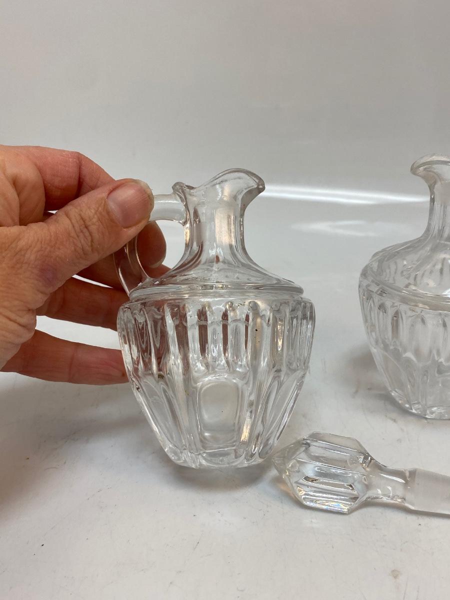 Vintage Small Clear Pressed Glass Cruet Decanter Oil Vinegar Bottles