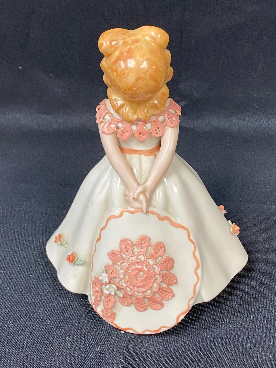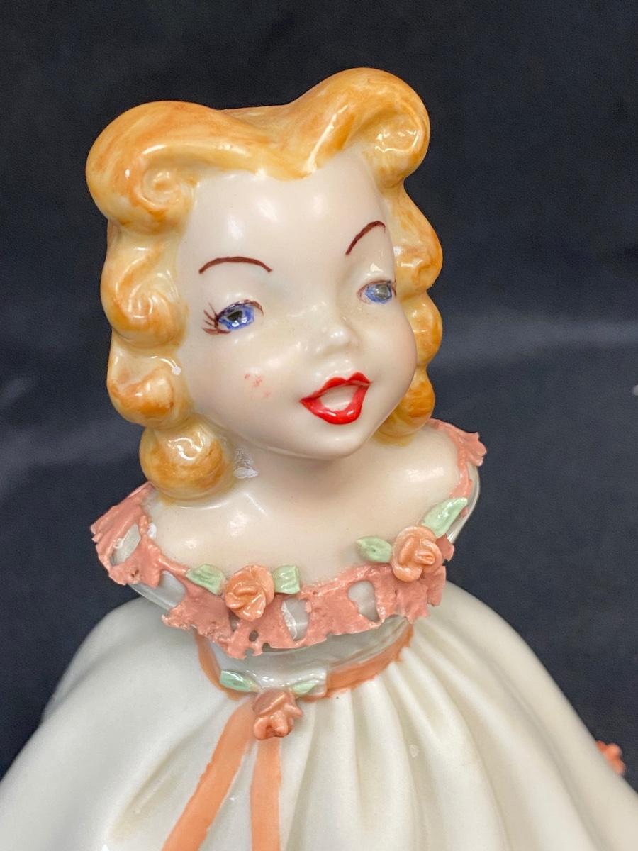 Vintage Ceramic Porcelain Girl with Flower Dress Leaning Forward Figurine