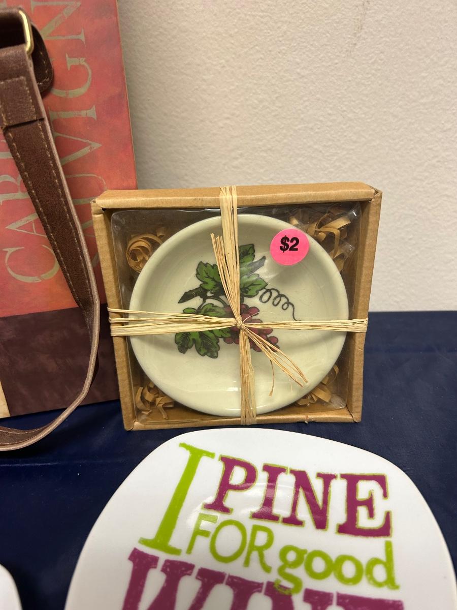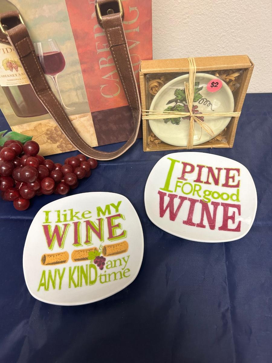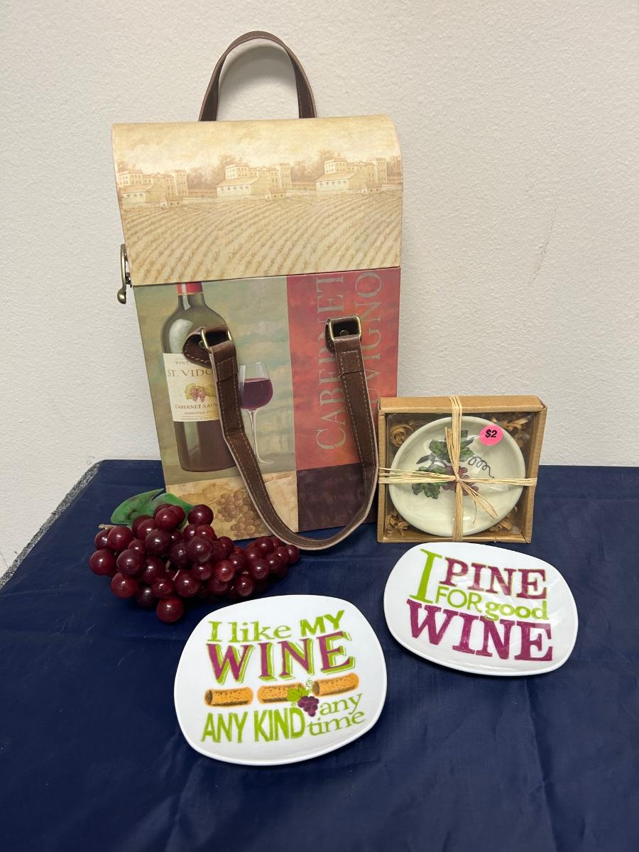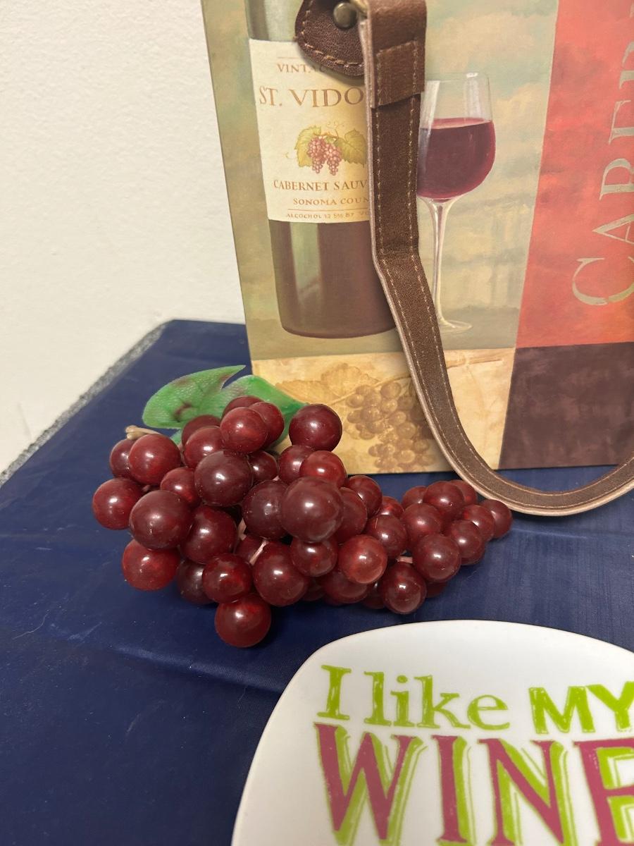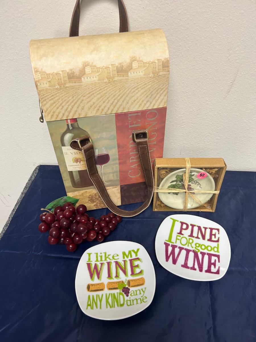 Mixed Lot of Wine Themed Decor Plates Wine Box Plastic Grapes