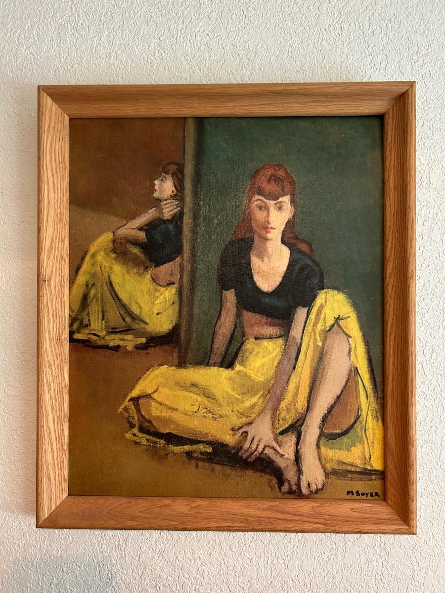 Vintage Moses Soyer Framed Painting Dancers at Rest Lithograph Print. In good condition.