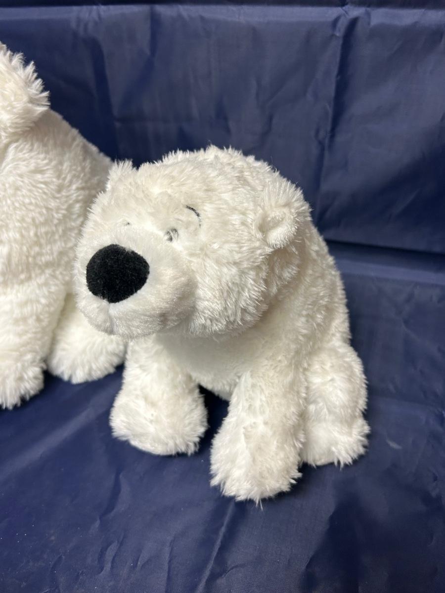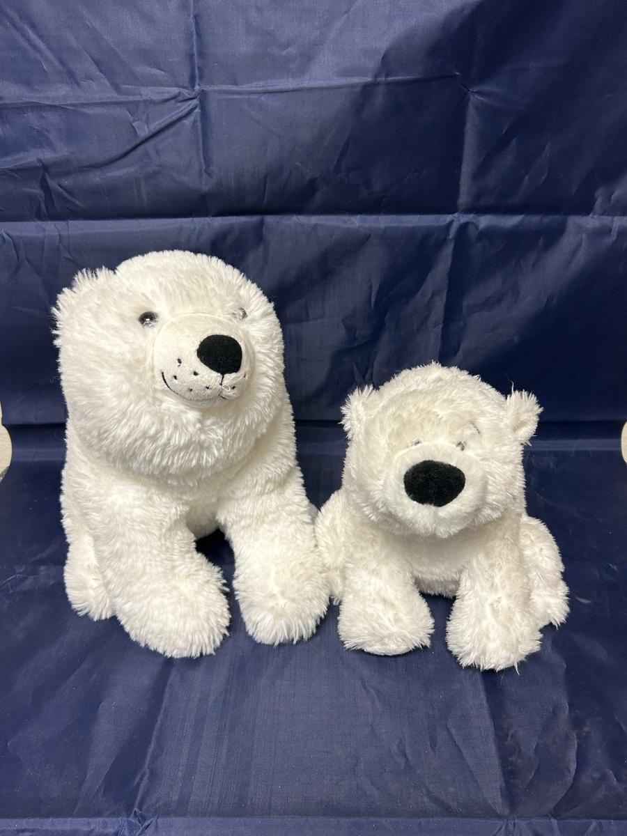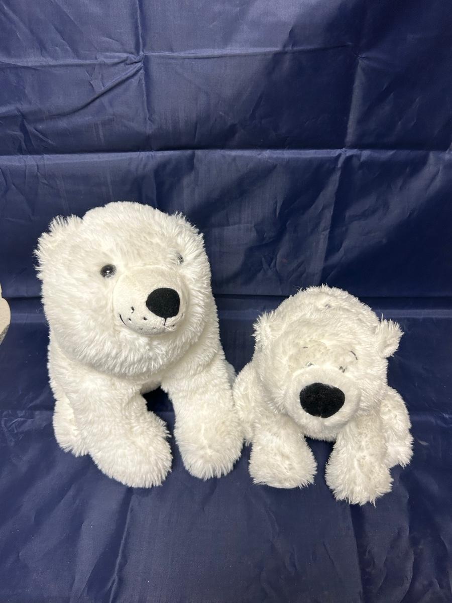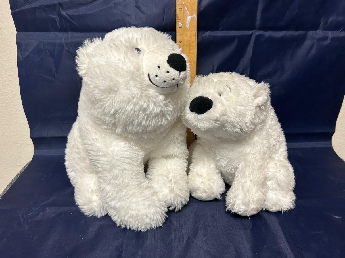 Pair of Soft Fuzzy White Polar Bear Teddy Plush Stuffed Animals. One smaller then the other. In good condition.